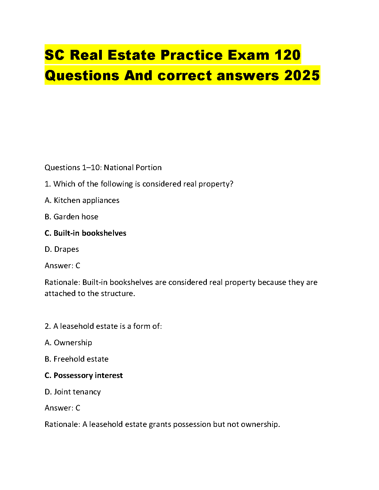 2025 SC Real Estate Practice Exam: 120 Questions and Answers for Exam Success