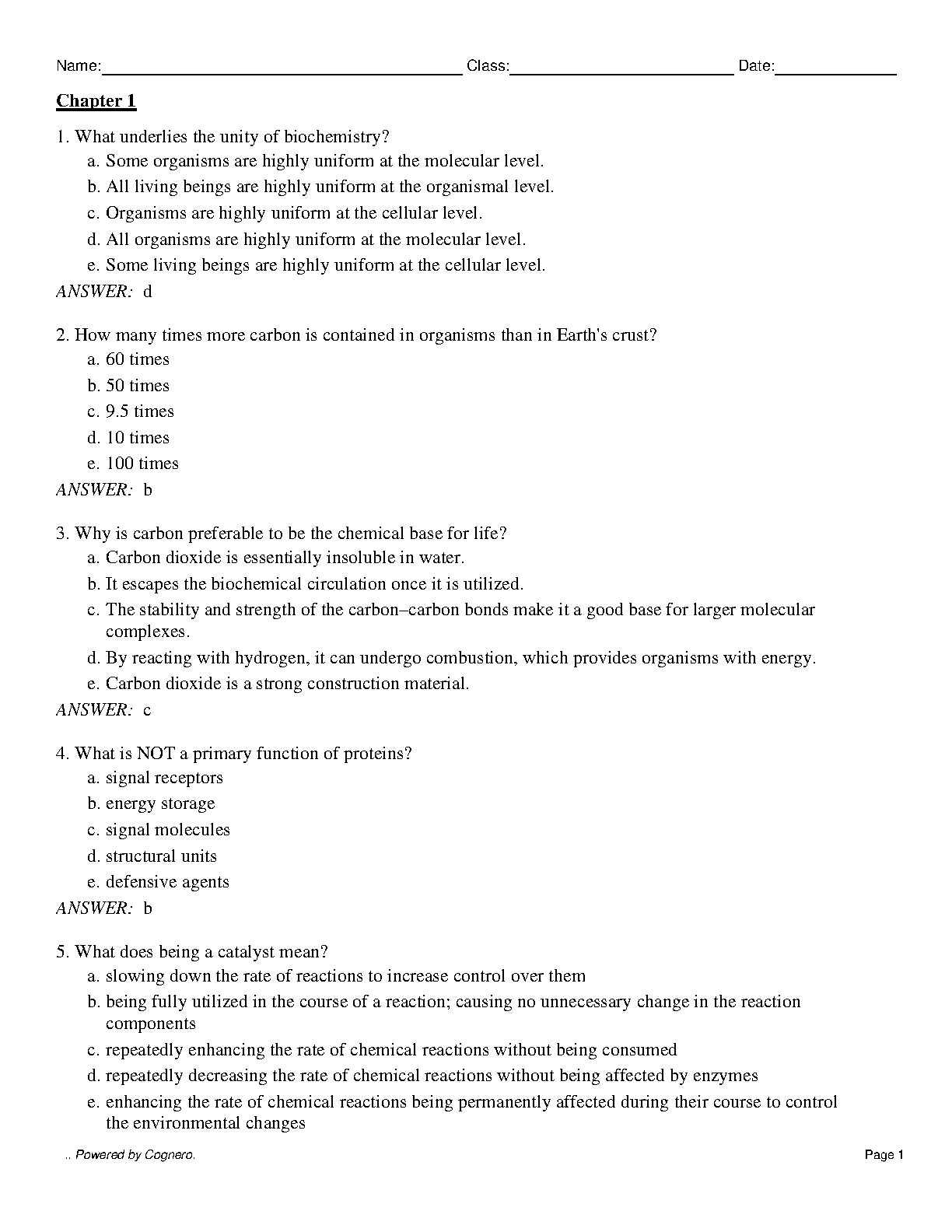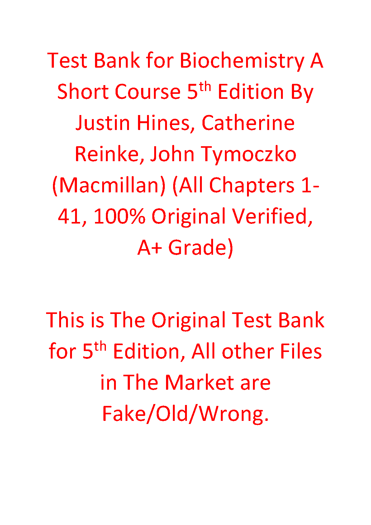 Ace your Biochemistry exam with this original, verified test bank for the 5th edition of Biochemistry: A Short Course by Justin Hines, Catherine Reinke, and John Tymoczko. 100% accurate and comprehensive, covering all chapters (1-41). Avoid resits and achieve an A+ grade on your first attempt!