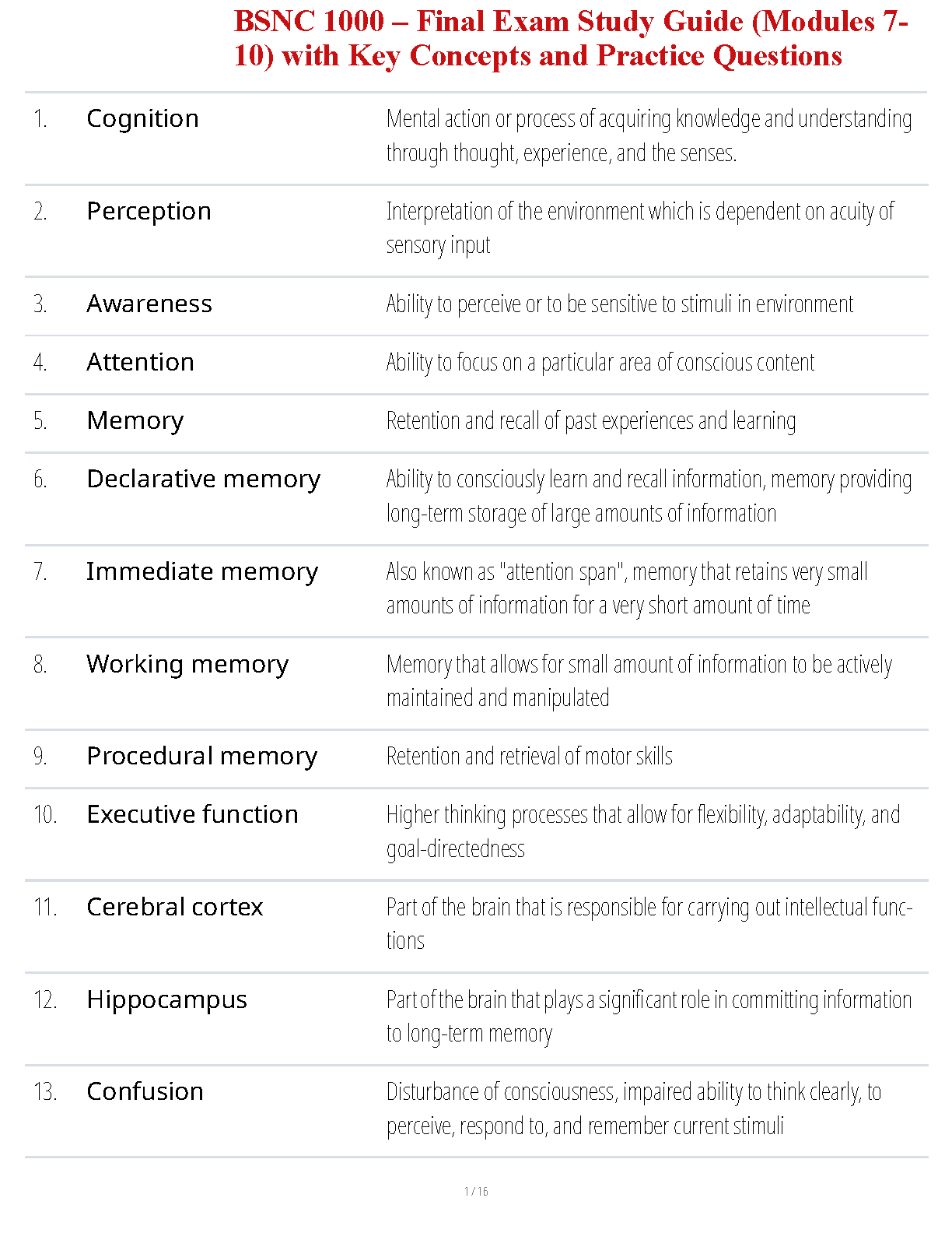BSNC 1000 Final Exam Study Guide (Modules 7-10) with Key Concepts and Practice Questions - Ace Your Exam!