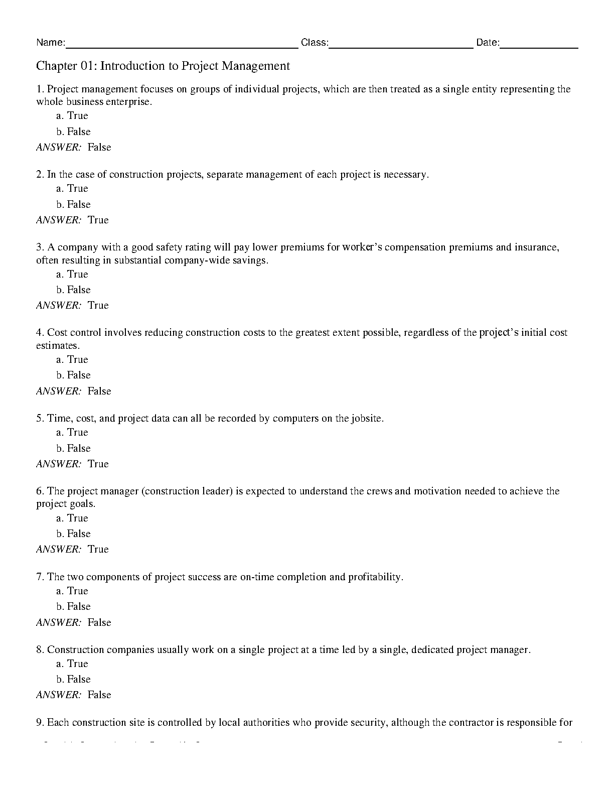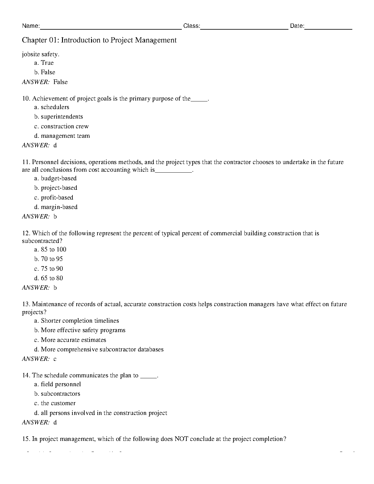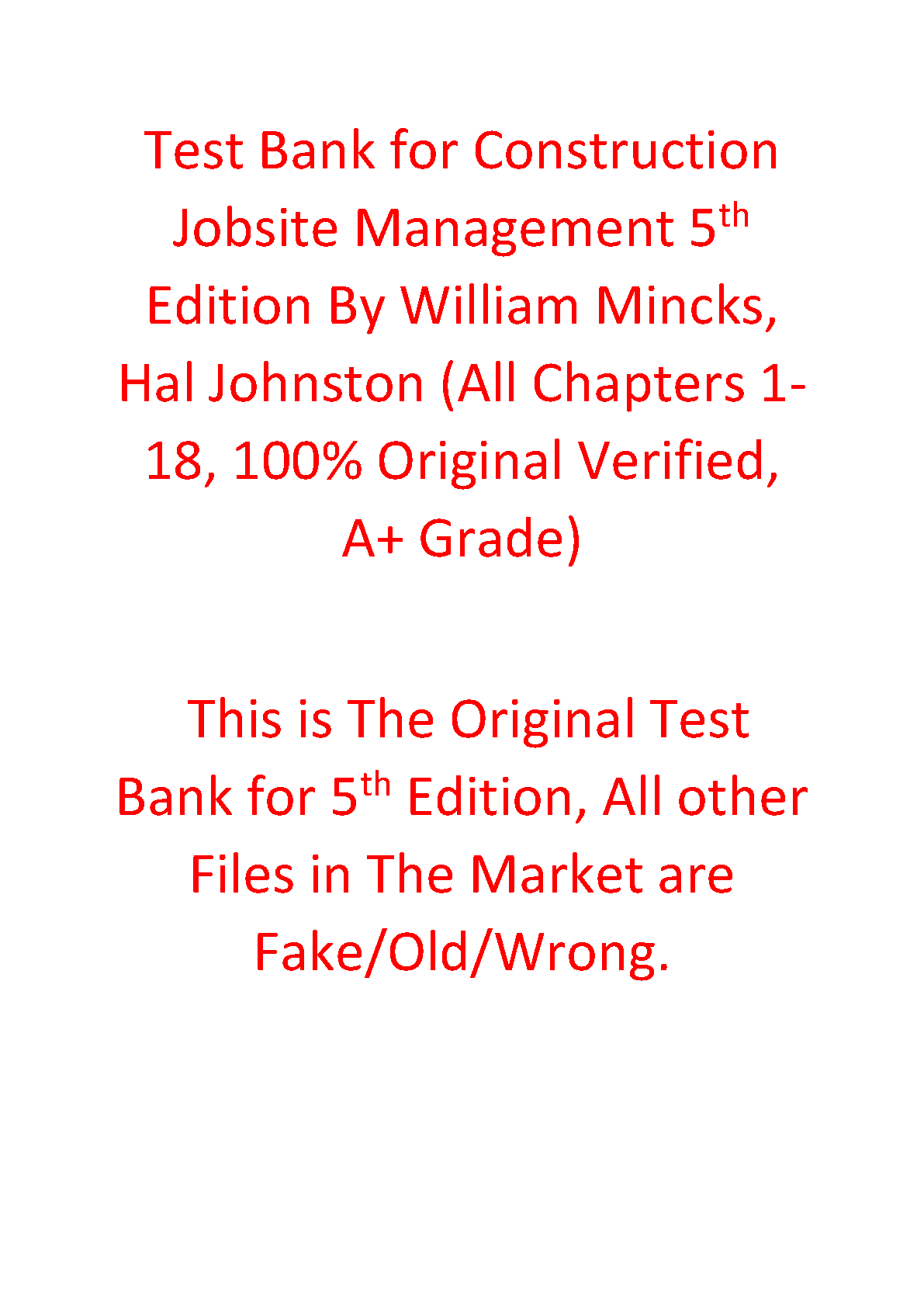 Guaranteed to help you pass your Construction Jobsite Management exam on the first try! This is the original, 100% verified test bank for the 5th edition, covering all chapters (1-18). Avoid the outdated and inaccurate files circulating online - this is the A+ grade resource you need to succeed.