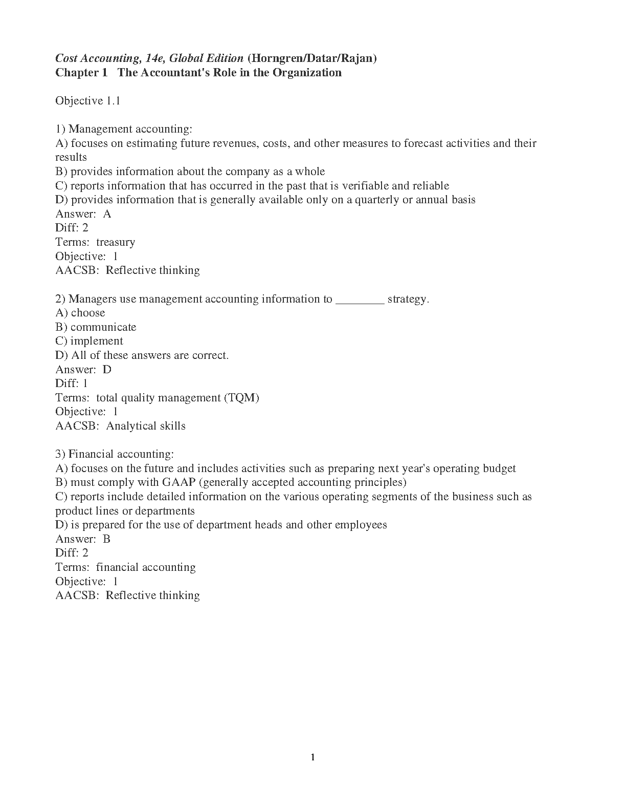 Cost Accounting (Global Edition) 14th Edition Test Bank by Horngren, Srikant, and Rajan