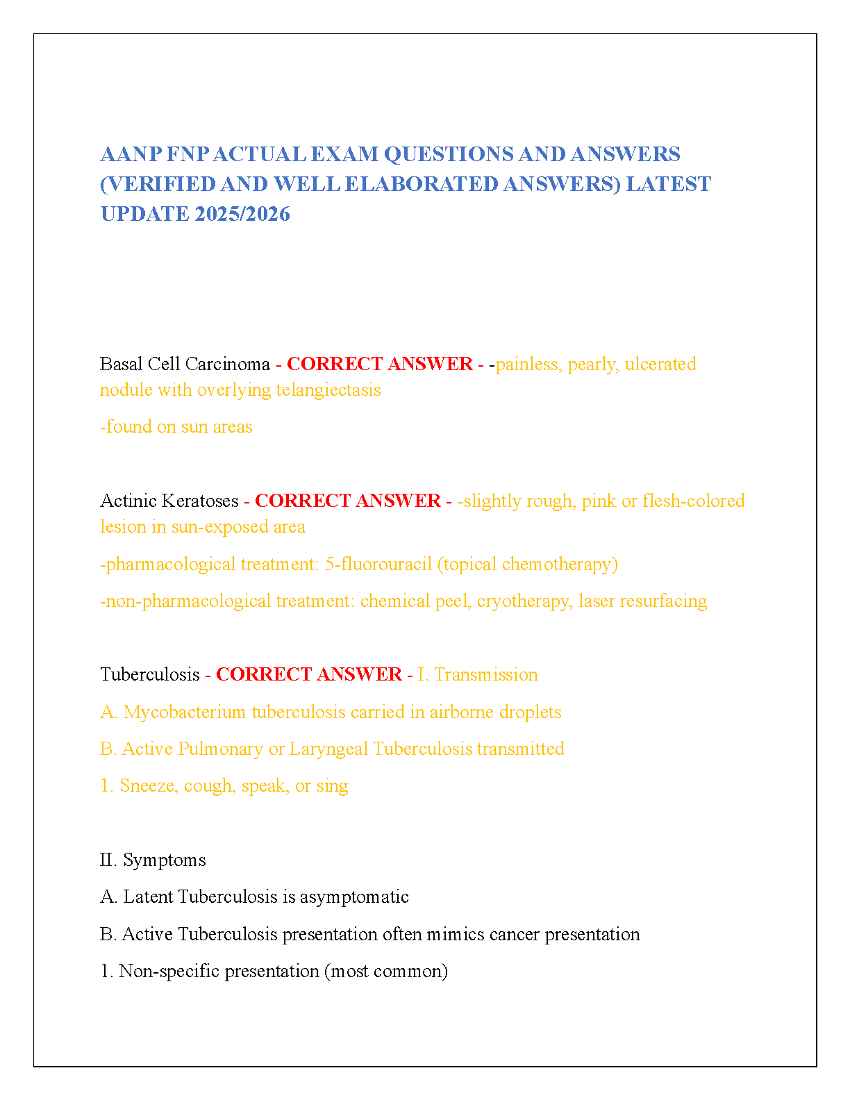 2025/2026 AANP FNP Actual Exam Questions and Answers by [Author Names]