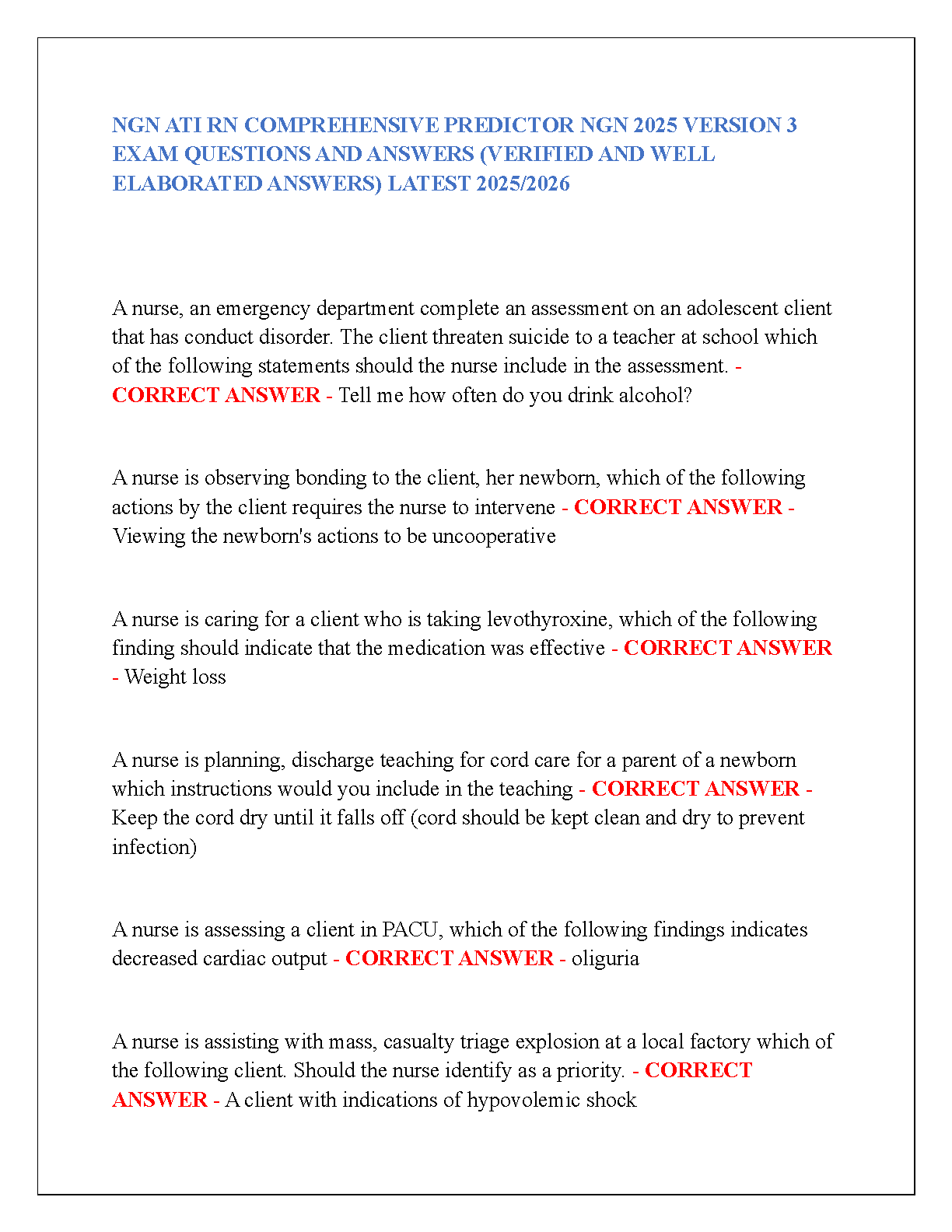 Ace your NGN ATI RN exam with this comprehensive study guide. This updated 2025/2026 version contains verified and well-elaborated answers to help you pass on your first attempt. Avoid resits with this invaluable resource featuring crucial exam questions and answers.