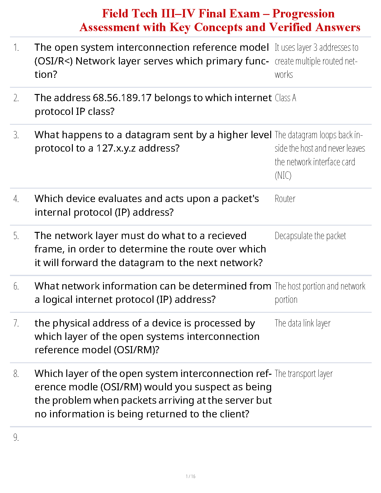 Field Tech III-IV Final Exam - Progression Assessment with Key Concepts and Verified Answers