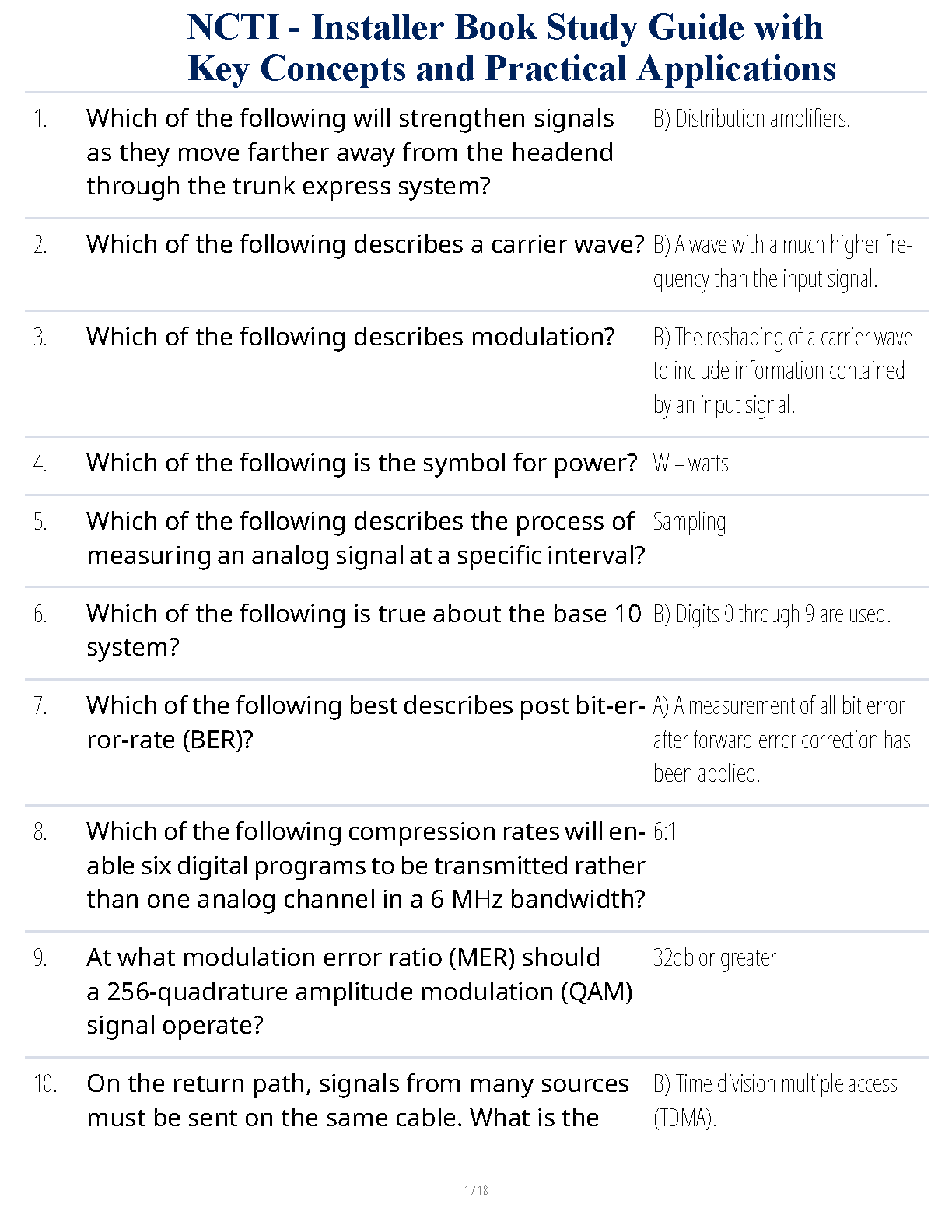 Ace your NCTI Installer exam on the first try with this comprehensive study guide. This resource provides key concepts and practical applications through practice questions and answers, covering essential topics to ensure exam success and avoid resits. Perfect for the 2024/2025 academic year.