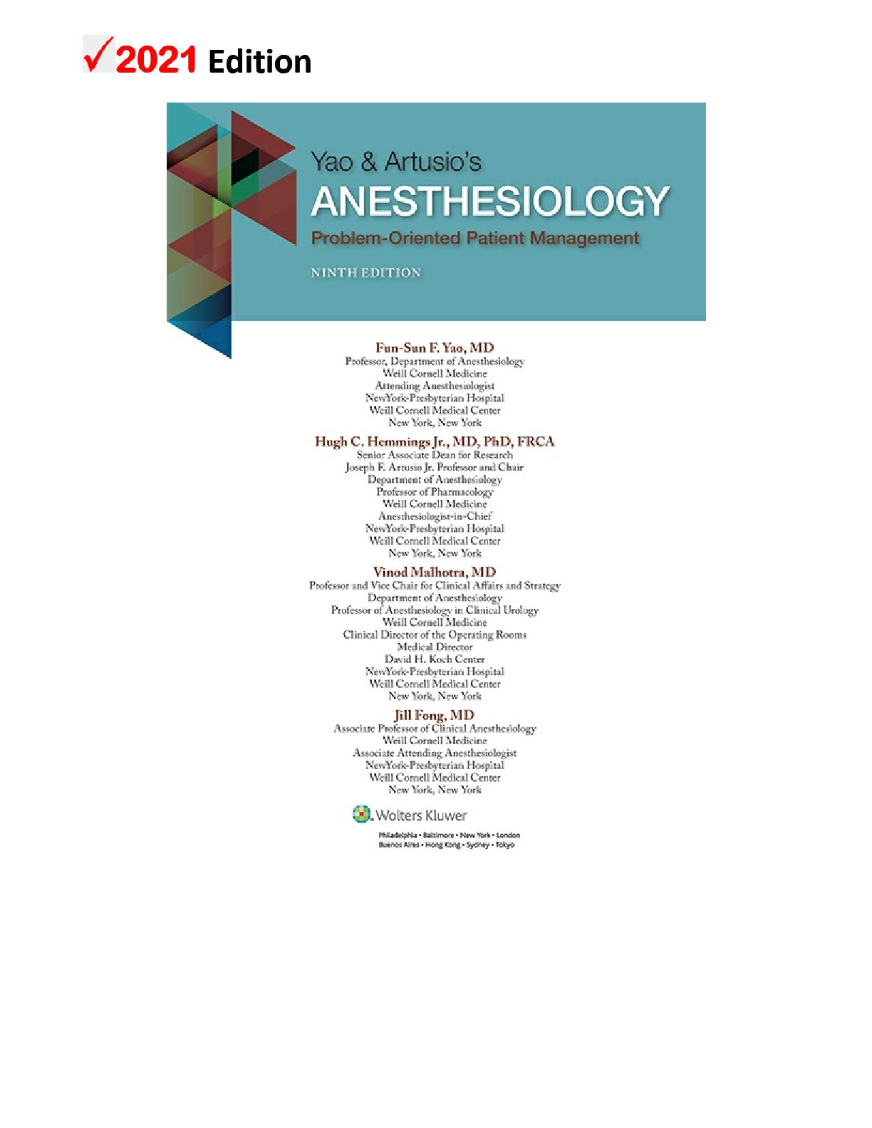 Yao & Artusio's Anesthesiology: Problem-Oriented Patient Management, 9th Edition - Fun-Sun F. Yao, Hugh C. Hemmings Jr., Vinod Malhotra, Jill Fong