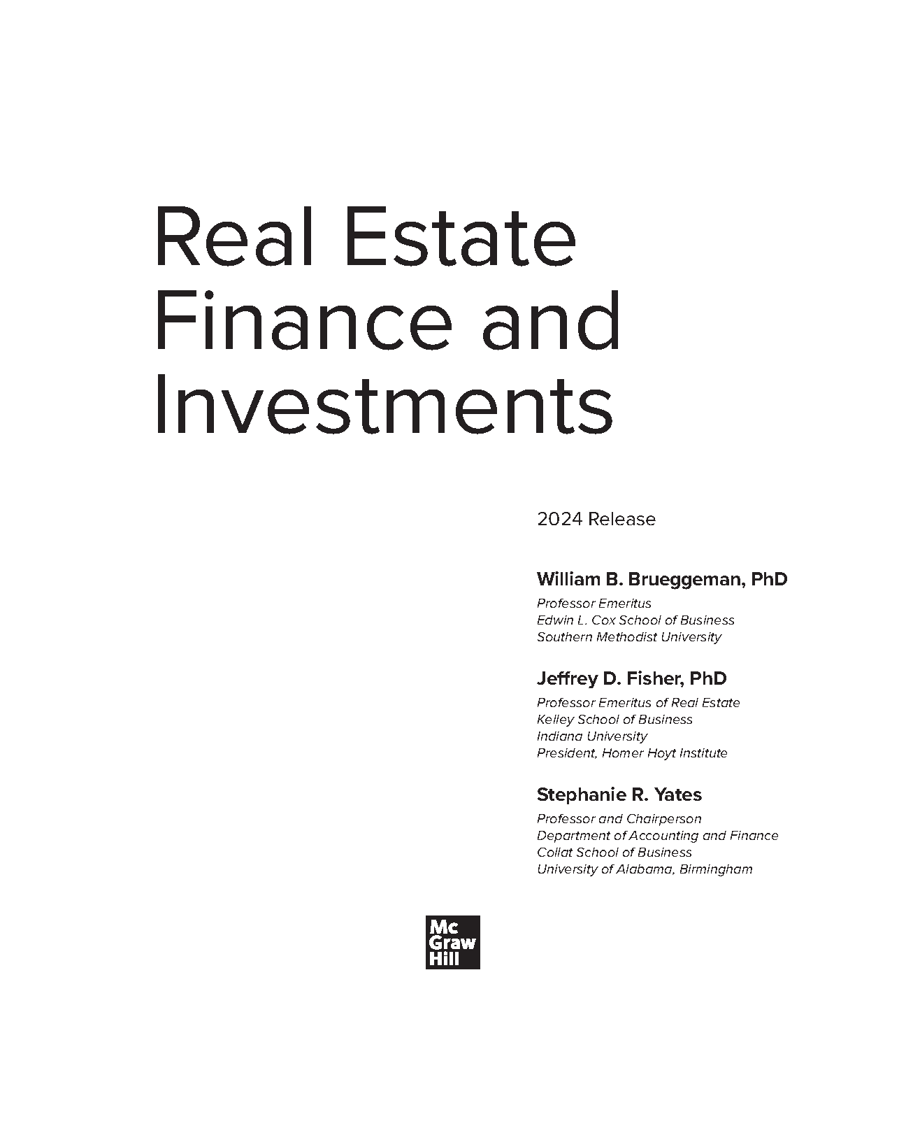 Ace your real estate finance and investment exams with this 2024 edition textbook by Bruegeman, Fisher, and Yates. Designed to help students pass their exams on the first attempt, this resource provides clear explanations and practice materials to build a solid understanding of key concepts. Avoid costly resits and master the subject matter with confidence.