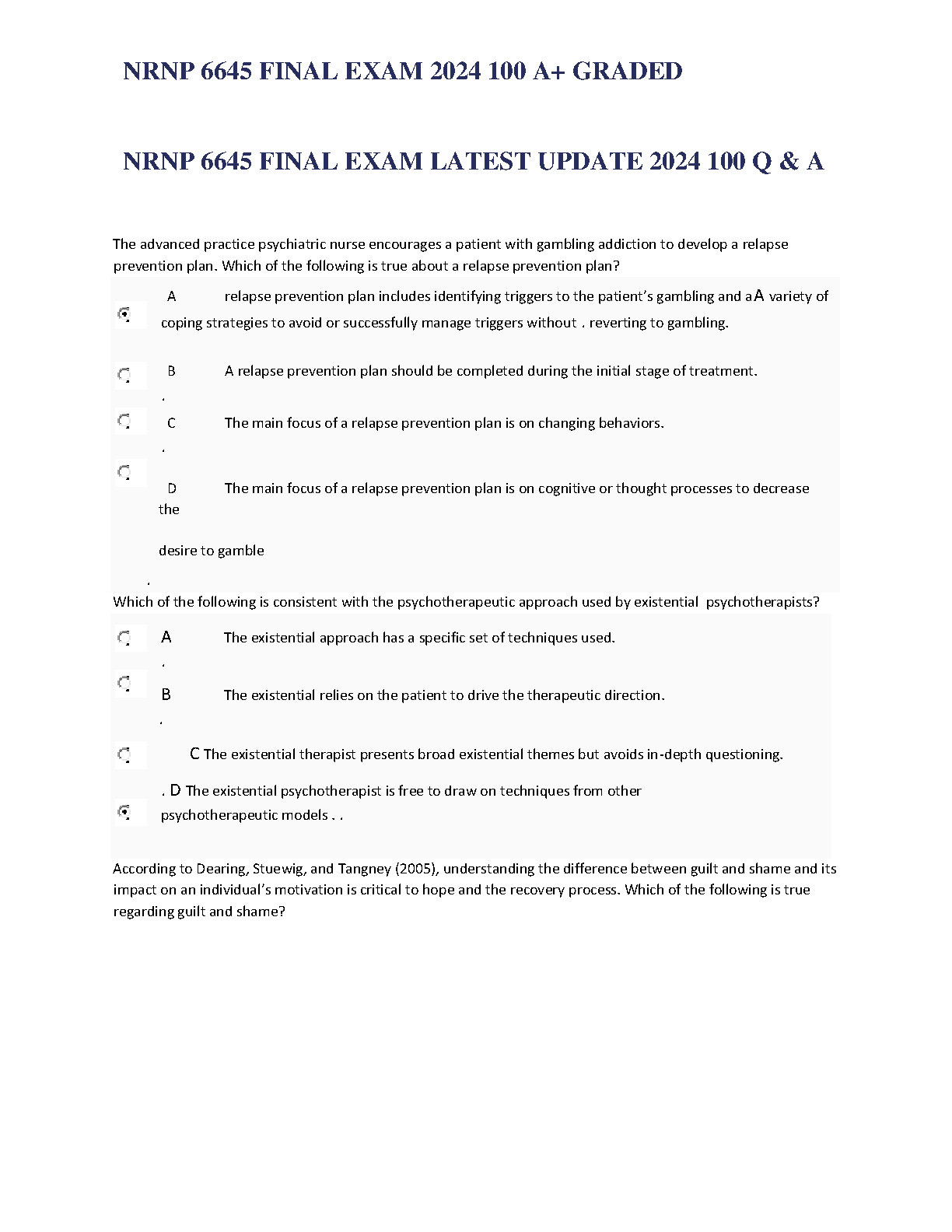 Ace your NRNP 6645 final exam with this comprehensive study guide! This 2024/2025 updated question and answer bank provides 100+ graded questions covering all key concepts. Prepare effectively, avoid resits, and pass on your first attempt.