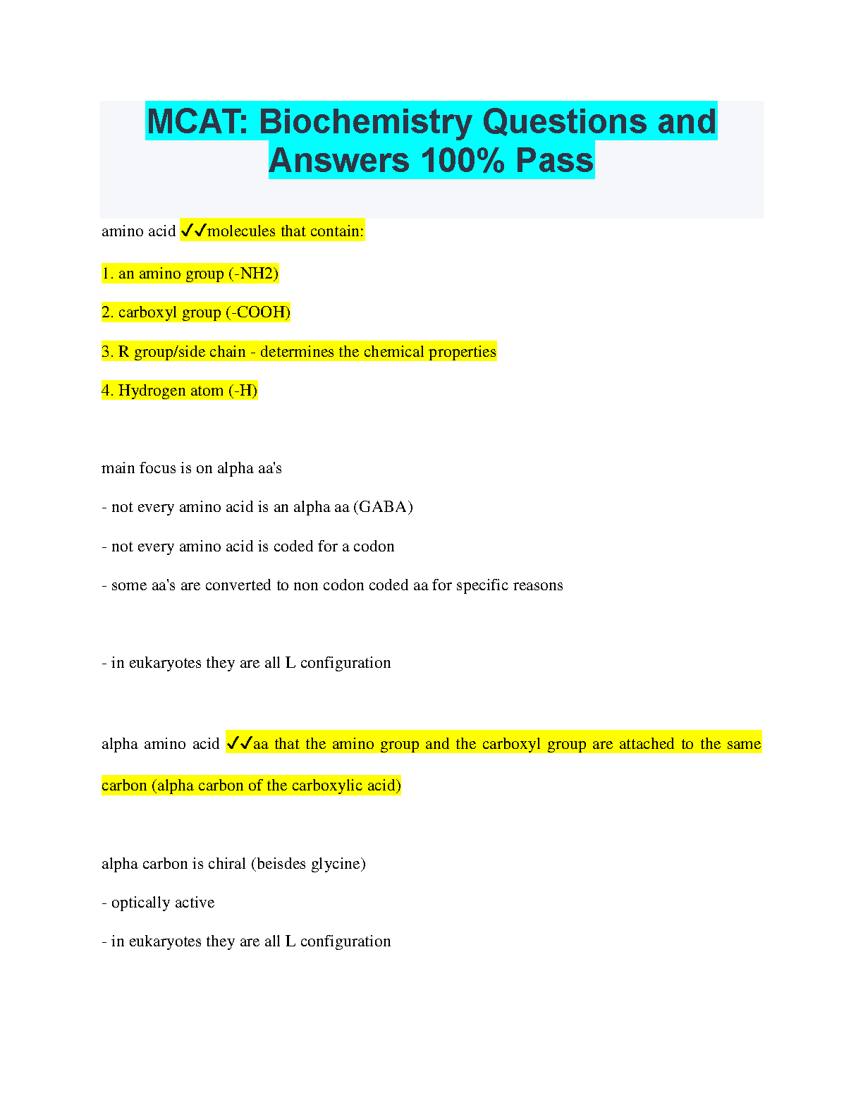 Master biochemistry for the MCAT with this comprehensive guide. This resource contains questions and answers focusing on amino acids, their structure, and properties. Prepare effectively and avoid resits with our focused approach. Ideal for students aiming to excel in their MCAT exams during the 2024-2025 academic year.