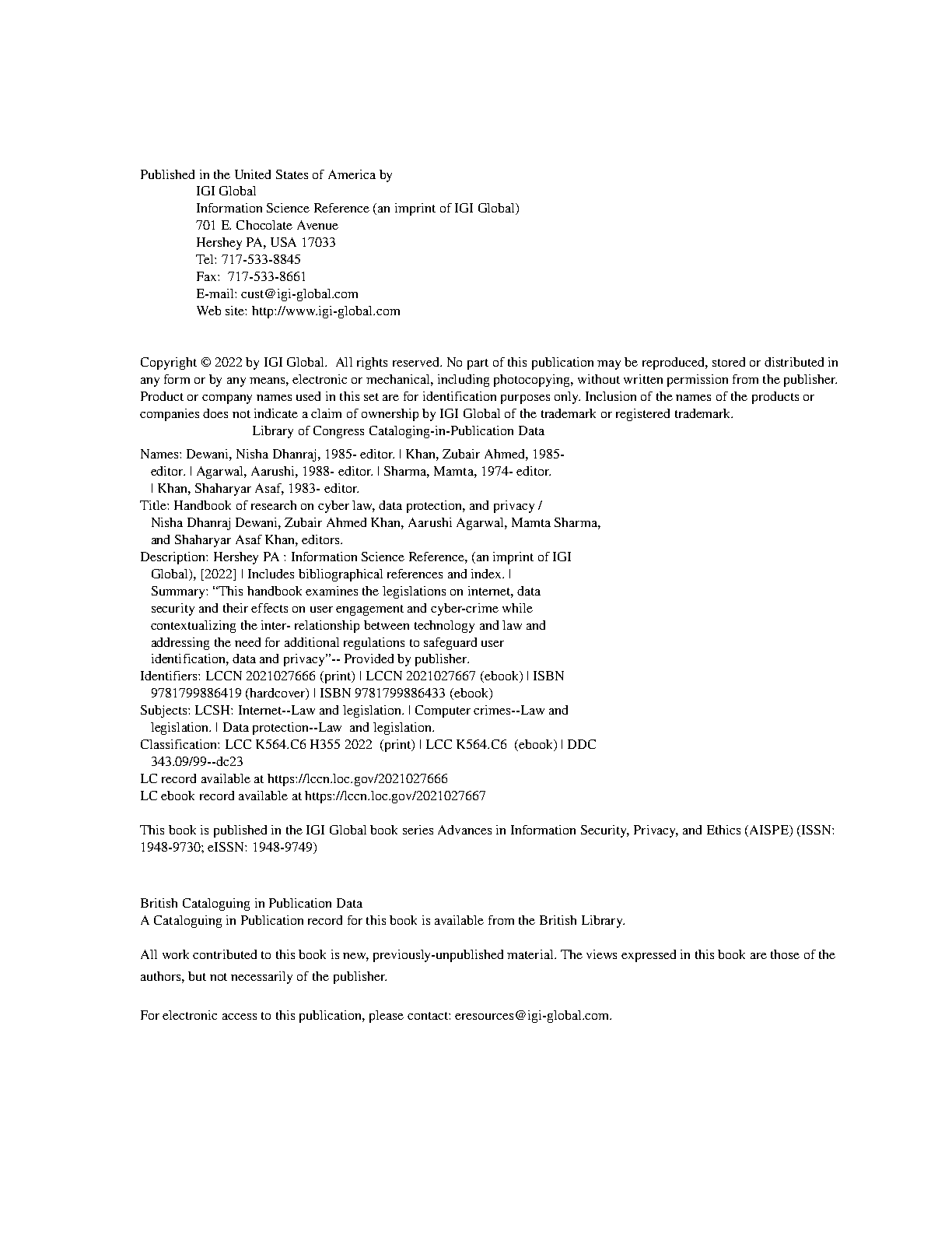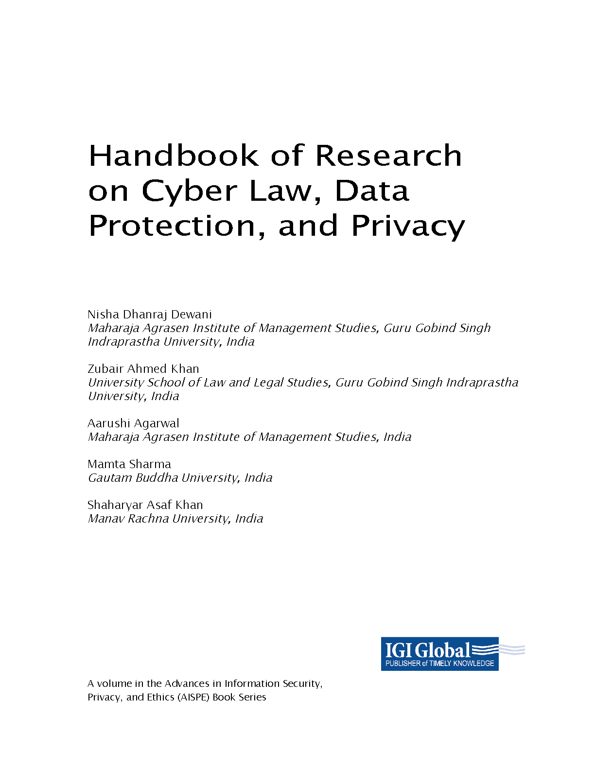 Handbook of Research on Cyber Law, Data Protection, and Privacy: Nisha Dhanraj Dewani, Zubair Ahmed Khan, Aarushi Agarwal, Mamta Sharma, and Shaharyar Ashraf Khan