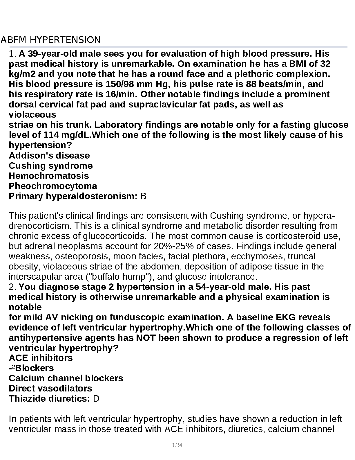 ABFM Hypertension: Case Studies and Solutions for Medical Students - 2024/2025 Edition