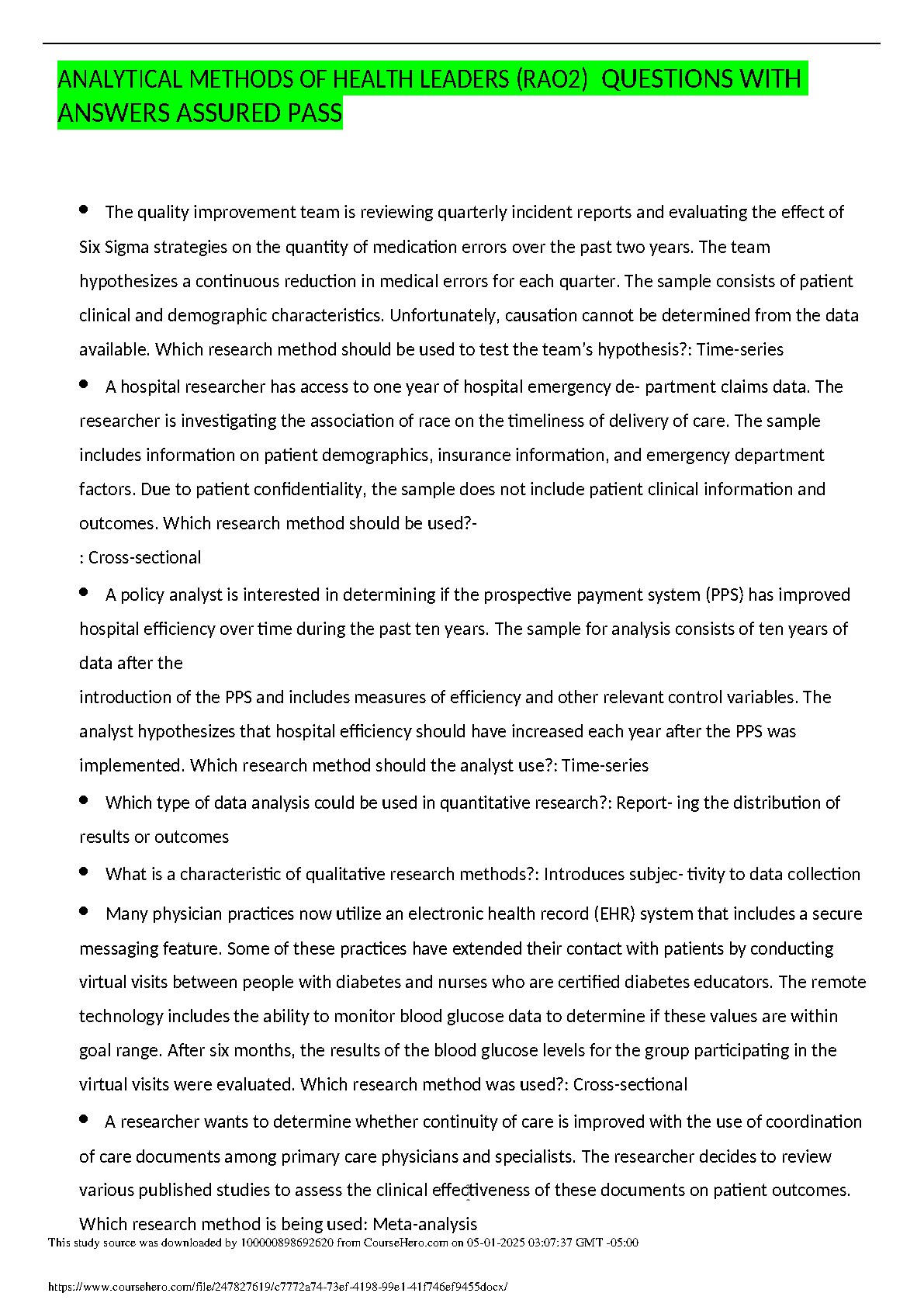 Analytical Methods of Health Leaders (RAO2) Questions with Answers: Assured Pass
