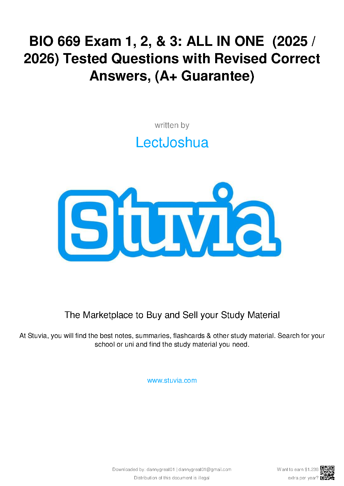BIO 669 Exam 1, 2, & 3: All-in-One (2025/2026) by LectJoshua - Tested Questions with Revised Answers (A+ Guarantee)
