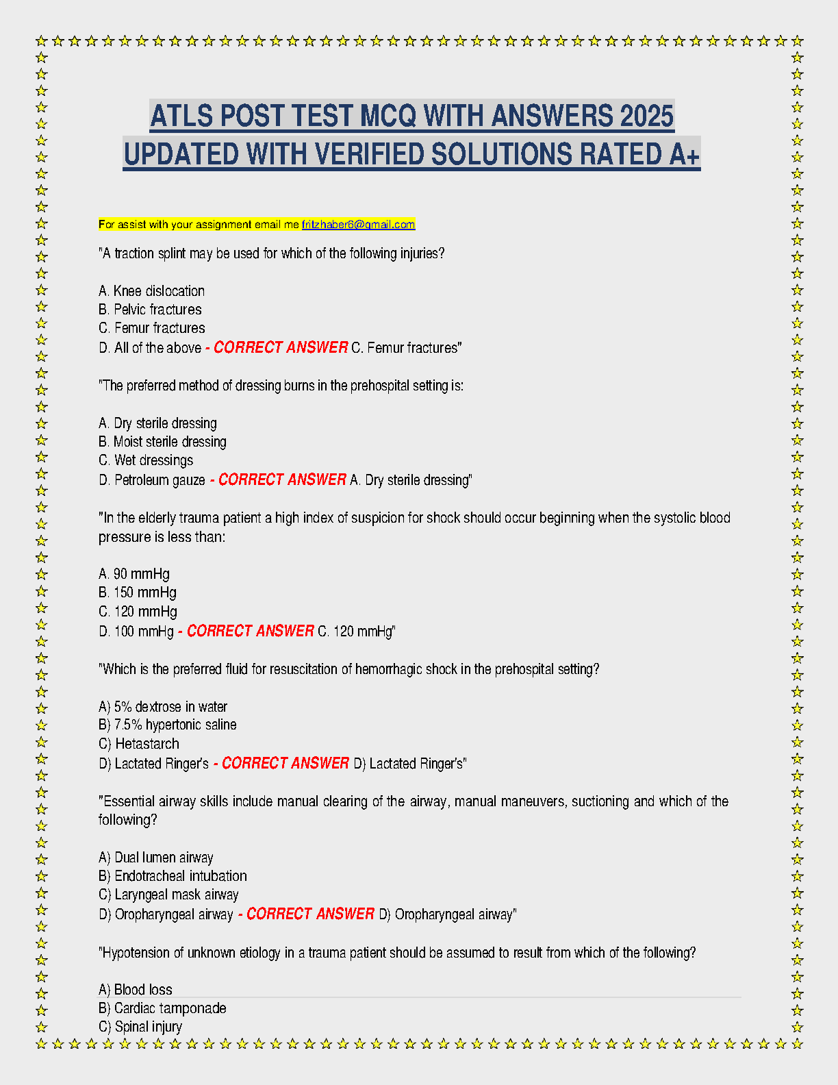 ATLS Post-Test MCQ with Answers 2025: Verified Solutions by Fritz Haber