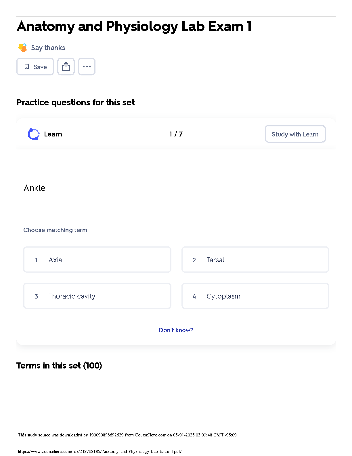 Conquer your Anatomy and Physiology Lab Exam 1 with this comprehensive set of practice questions. Designed to help students pass on their first attempt, these questions cover key concepts and ensure exam readiness. Master the material and avoid resits!