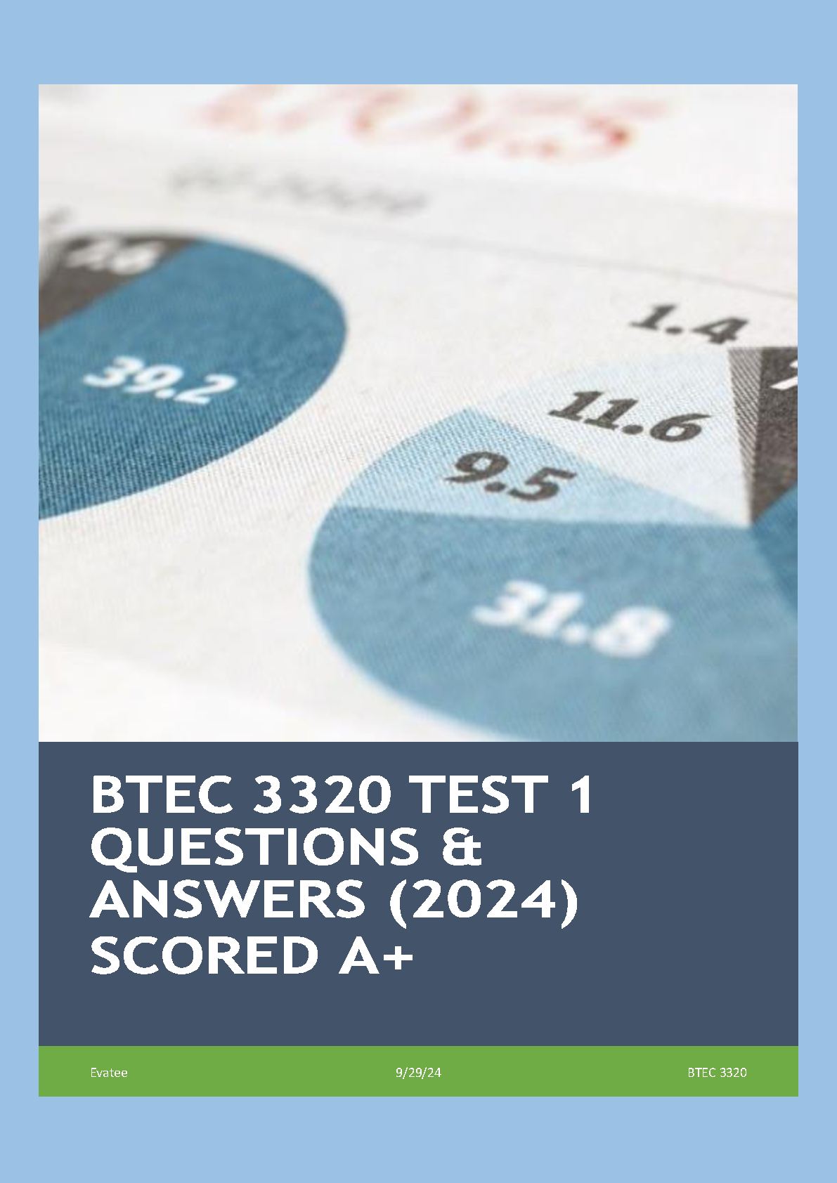 BTEC 3320 Test 1 Questions & Answers (2024 Edition) - Scored A+ by Evatee