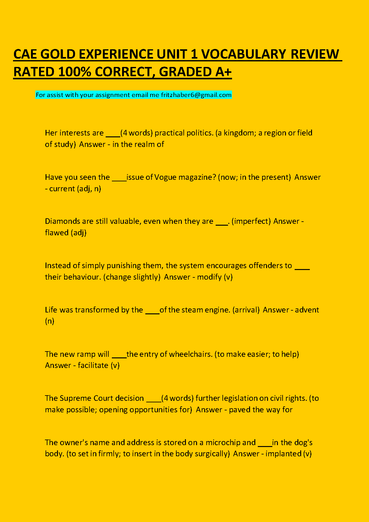 CAE Gold Experience Unit 1 Vocabulary Review: A+ Graded Solutions