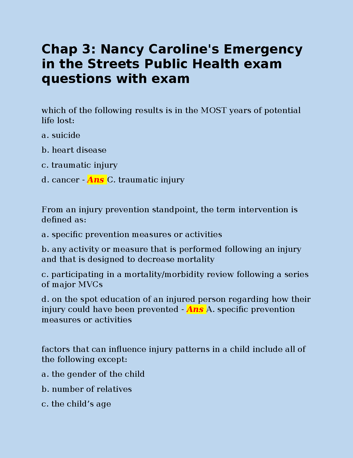 Nancy Caroline's Emergency in the Streets: Public Health Exam Questions and Answers