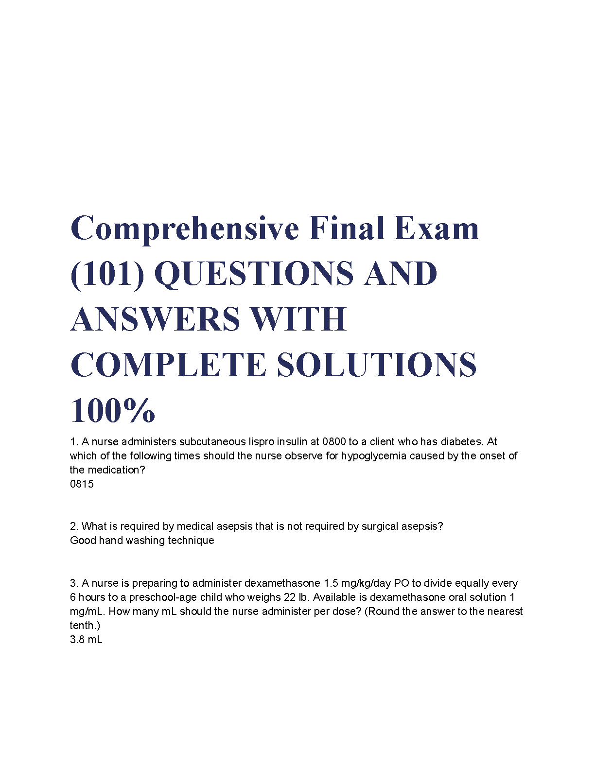 Comprehensive Final Exam (101) Questions and Answers with Complete Solutions - 2024/2025 Edition