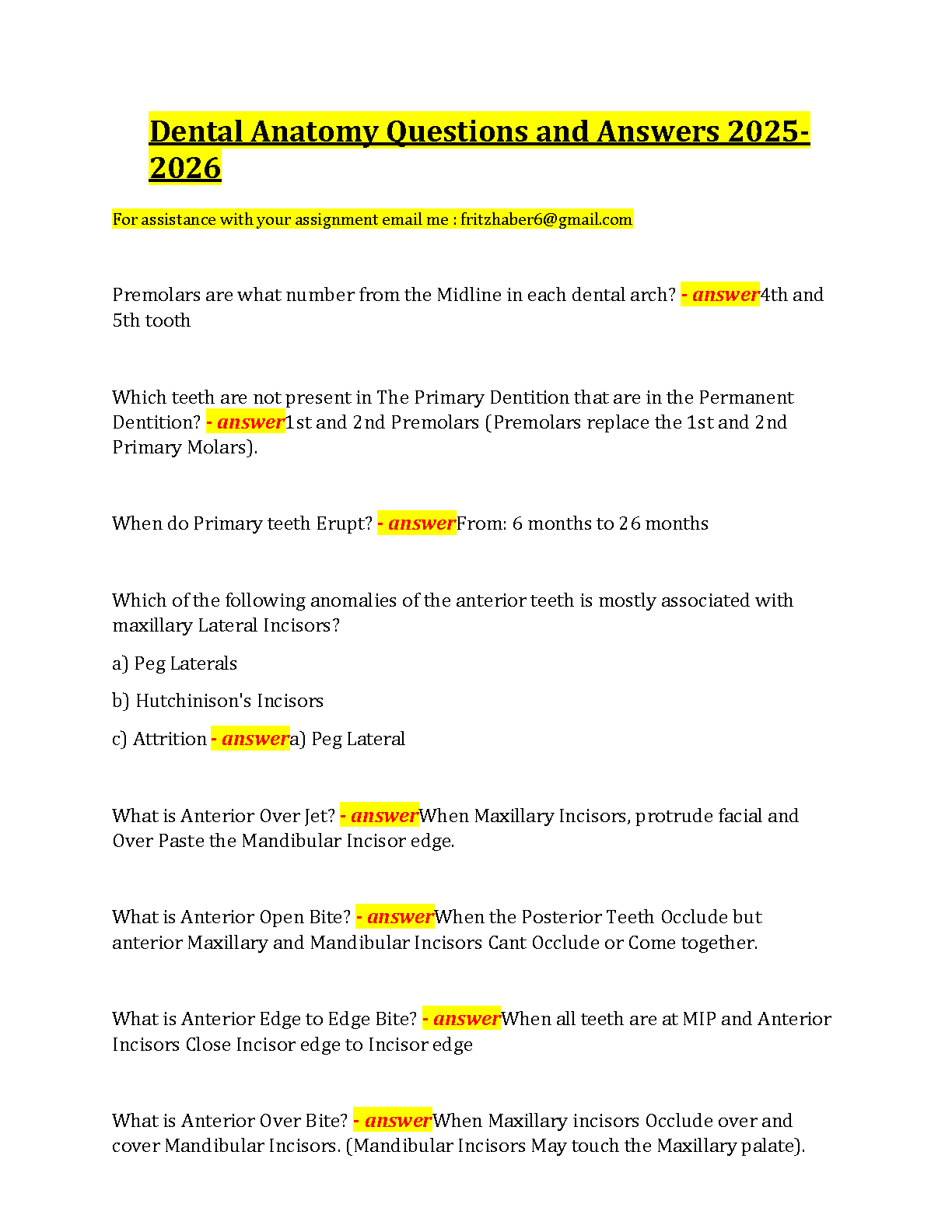 Dental Anatomy Questions and Answers 2025-2026: A Comprehensive Guide for Students