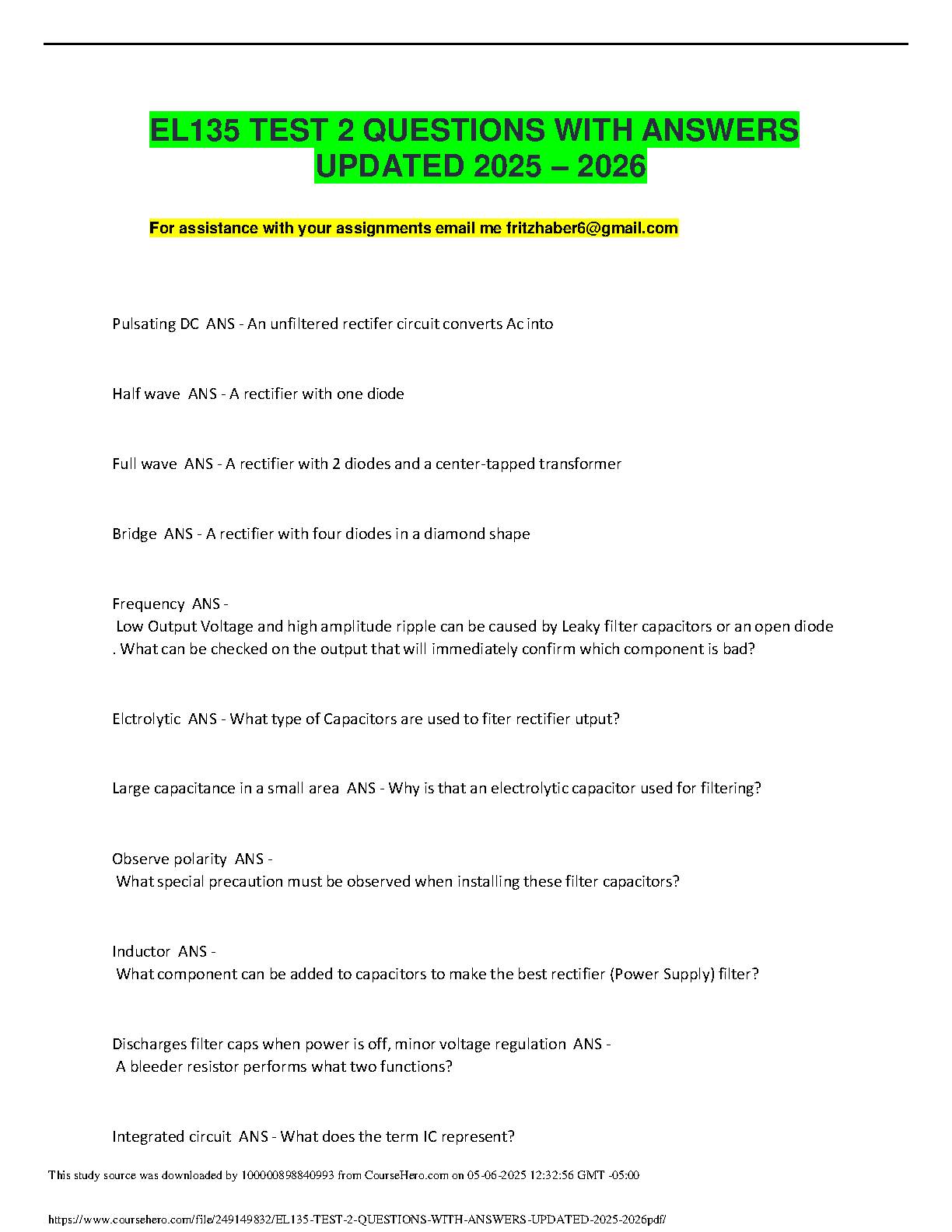 This comprehensive study guide contains questions and answers for EL135 Test 2, updated for the 2025-2026 academic year. Ace your exam on the first try and avoid resits with this helpful resource.