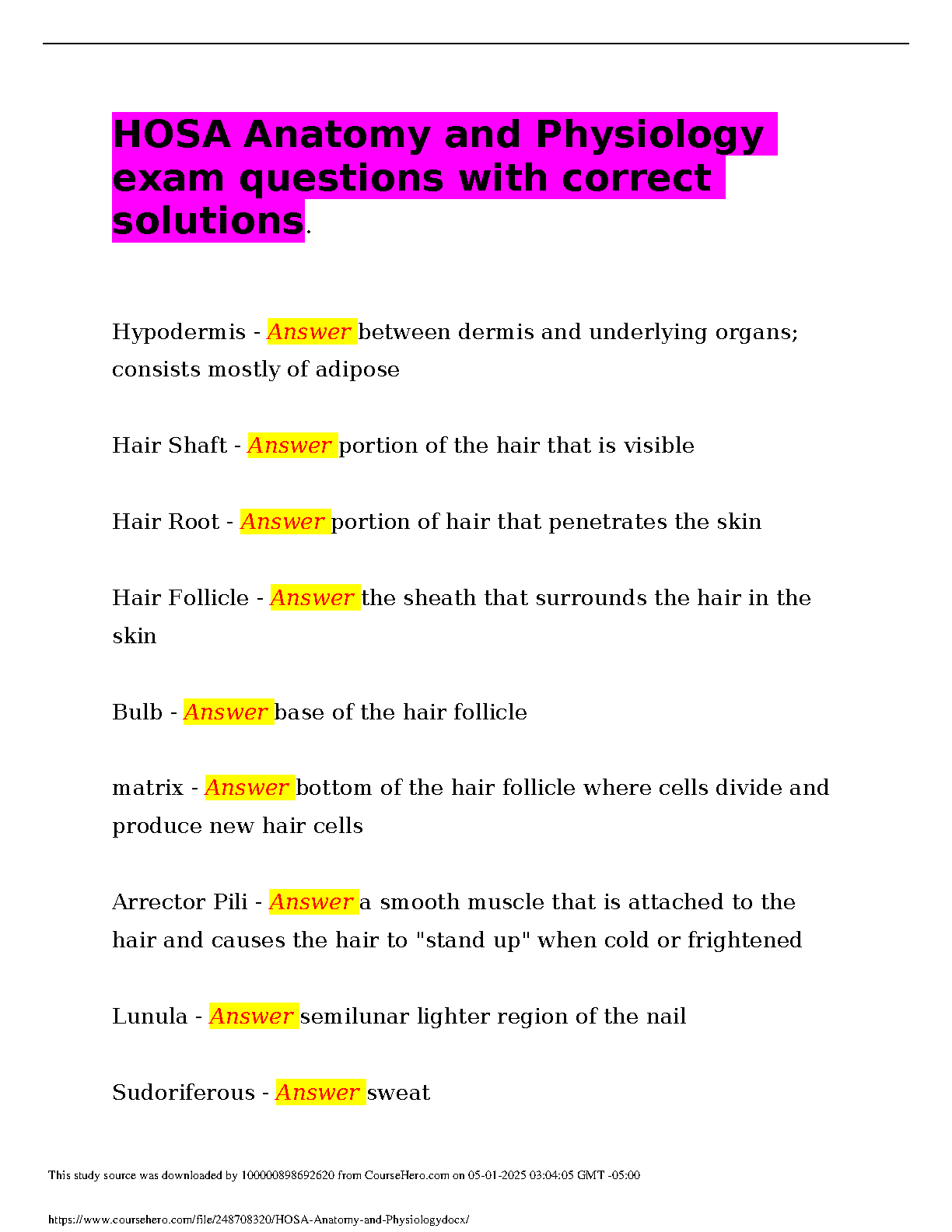 HOSA Anatomy and Physiology Exam Questions and Answers: 2024-2025 Edition
