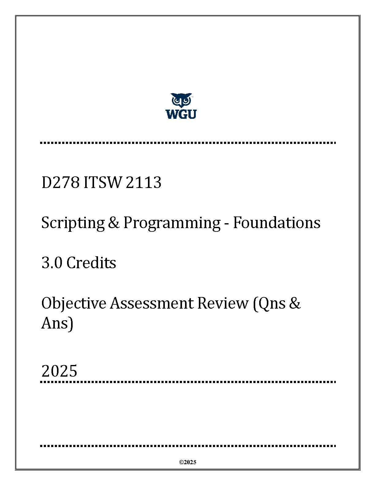 WGU D278 ITSW 2113 Scripting & Programming Foundations - 2025 Objective Assessment Review - Ace Your Exam!