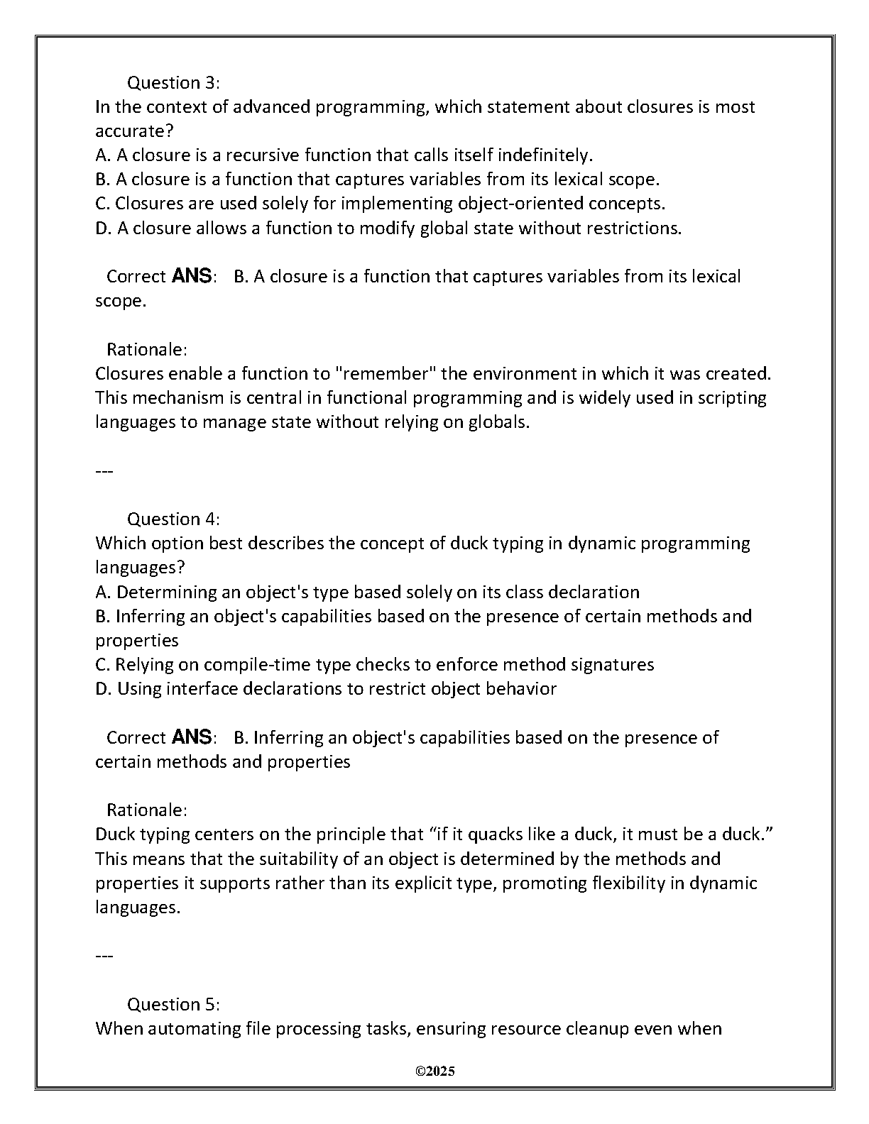 Conquer your WGU D278 ITSW 2113 Scripting & Programming Foundations exam with this comprehensive 2025 objective assessment review. This resource contains questions and answers to help you achieve exam success on your first attempt, avoiding resits. Prepare effectively and boost your confidence!