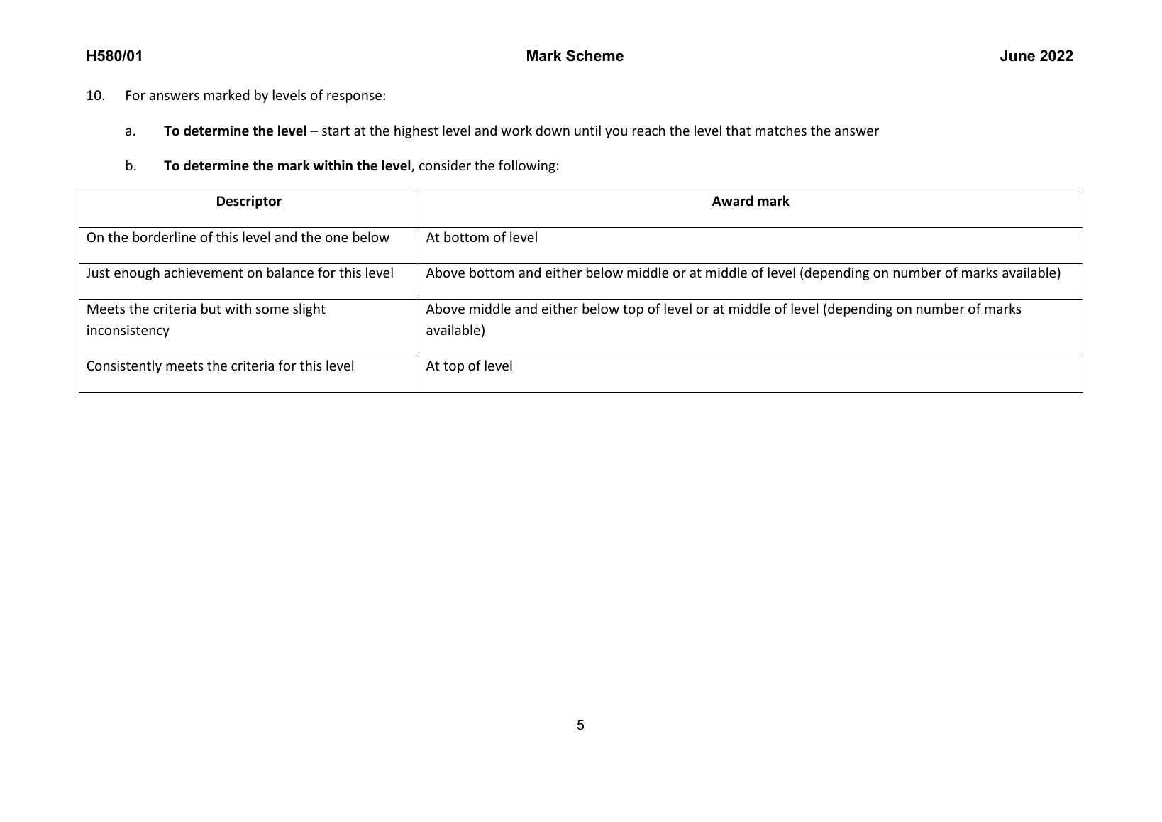 OCR A LEVEL SOCIOLOGY PAPER 1 MAY 2022 MARK SCHEME (H580/01: Socialisation, culture and identity)