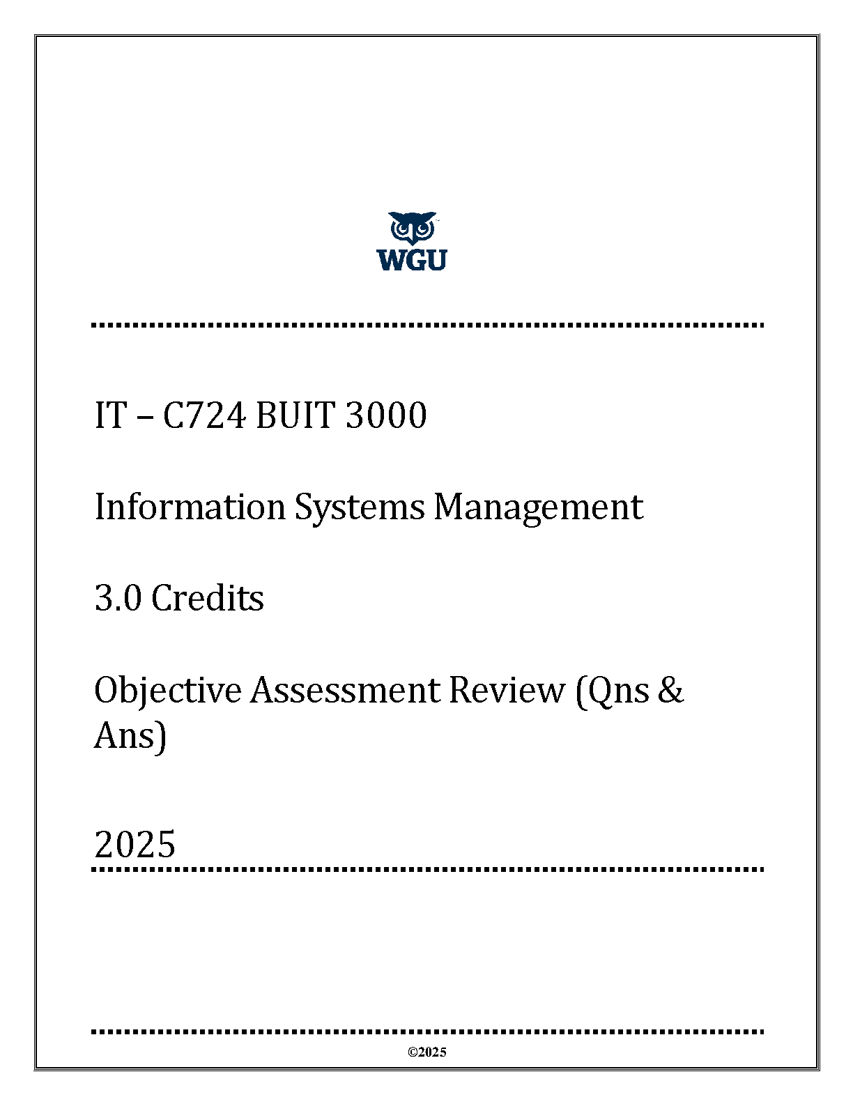 Conquer your WGU C724 BUIT 3000 Information Systems Management exam with this comprehensive 2025 objective assessment review. This resource contains questions and answers designed to help you pass on your first attempt, avoiding costly resits. Prepare effectively and achieve exam success!