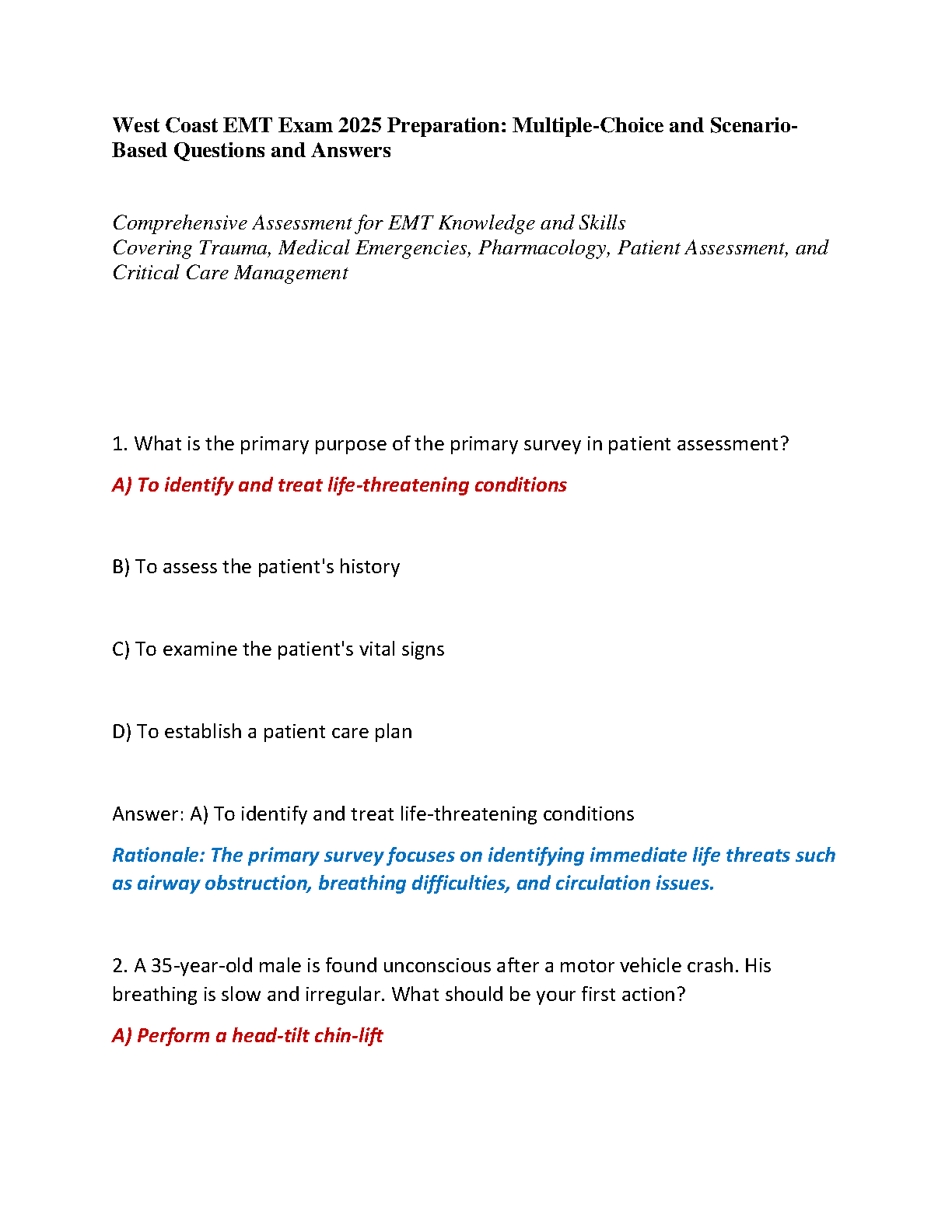West Coast EMT Exam 2025 Preparation: Multiple-Choice and Scenario-Based Questions and Answers