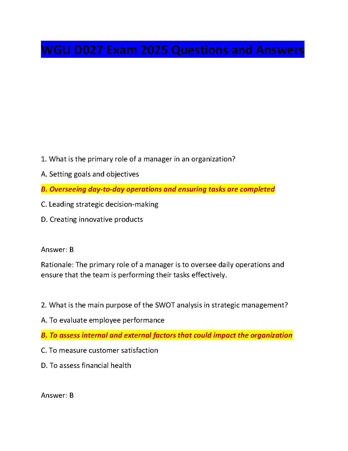 Prepare for your WGU D027 exam with confidence using this updated 2025 question and answer guide. This resource provides detailed explanations and helps students understand key concepts, ensuring first-attempt success and avoiding exam resits. Master the material and achieve your academic goals.