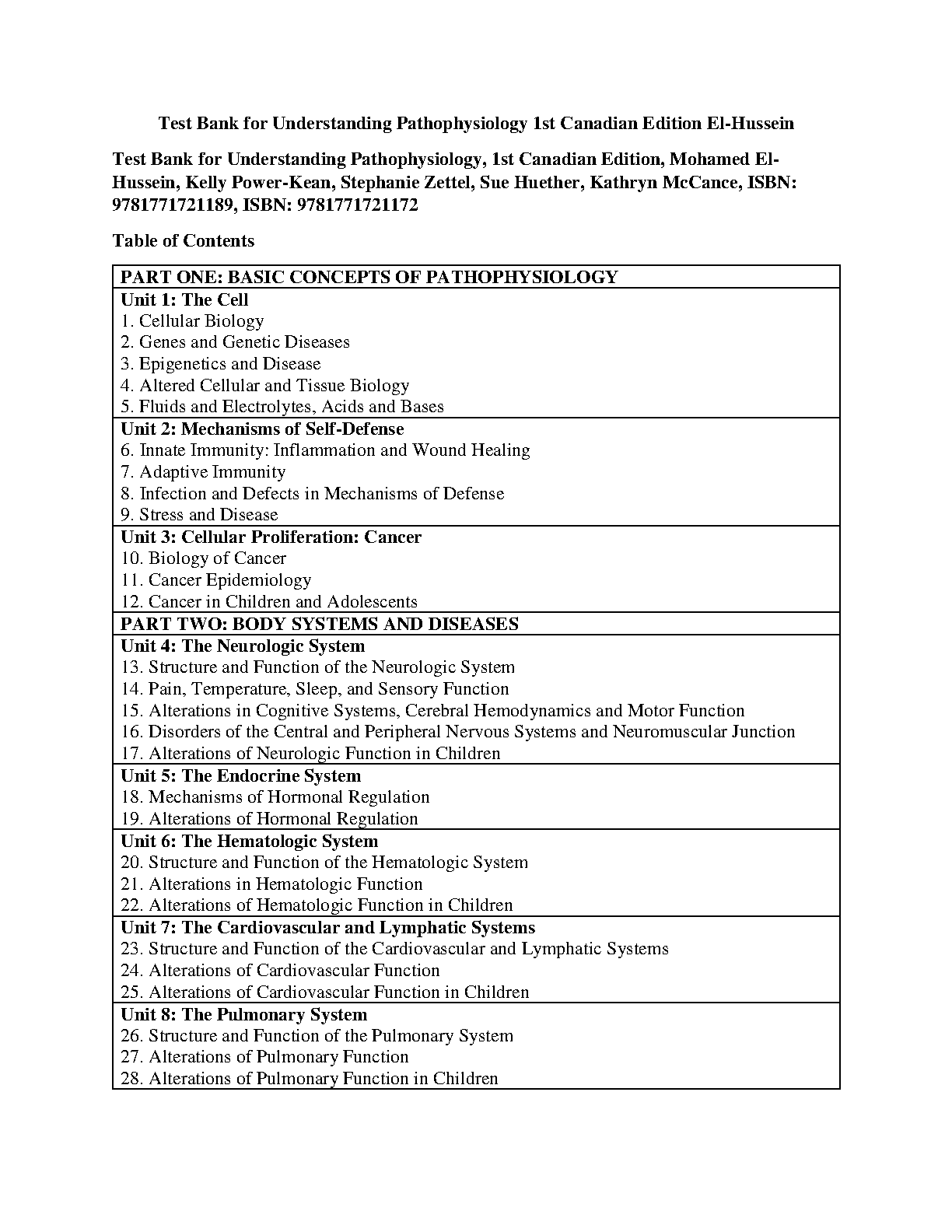 Understanding Pathophysiology: 1st Canadian Edition Test Bank - El-Hussein, Power-Kean, Zettel, Huether, McCance, Brashers, & Rote