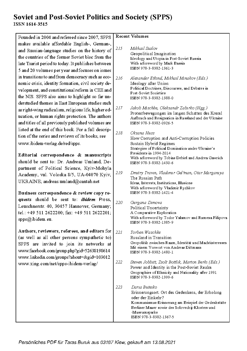 Russian Active Measures: Yesterday, Today, Tomorrow - Volume 224, Edited by Olga Bertelsen and Andreas Umland