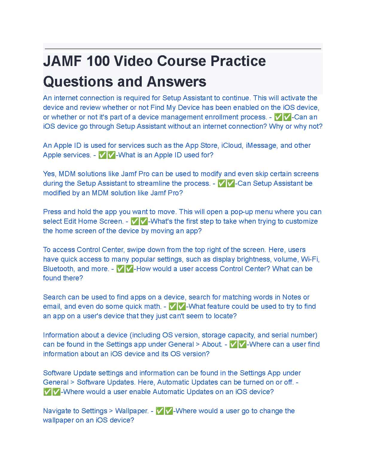 Ace your JAMF 100 exam with this comprehensive set of practice questions and answers. This resource covers key concepts and helps you master the material, boosting your confidence for exam day and improving your chances of passing on your first attempt.