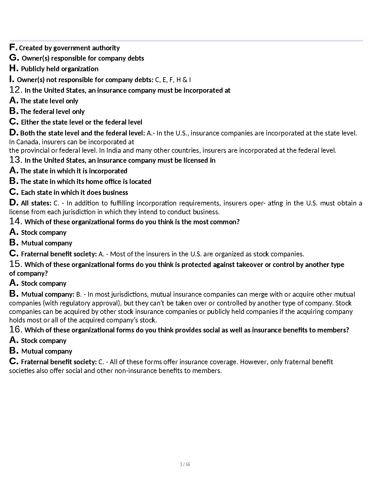 LOMA 308 Module 2: Understanding Business Structures for Insurance Companies