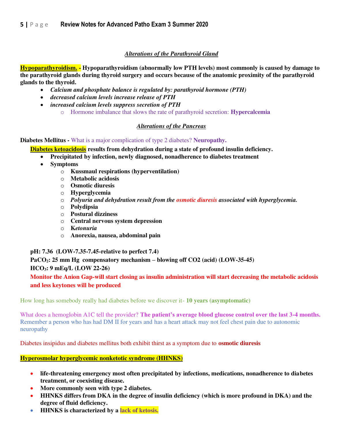 Review Notes for Advanced Patho Exam 3 Summer UPDATED AND REVIEWED FOR 2023/2024