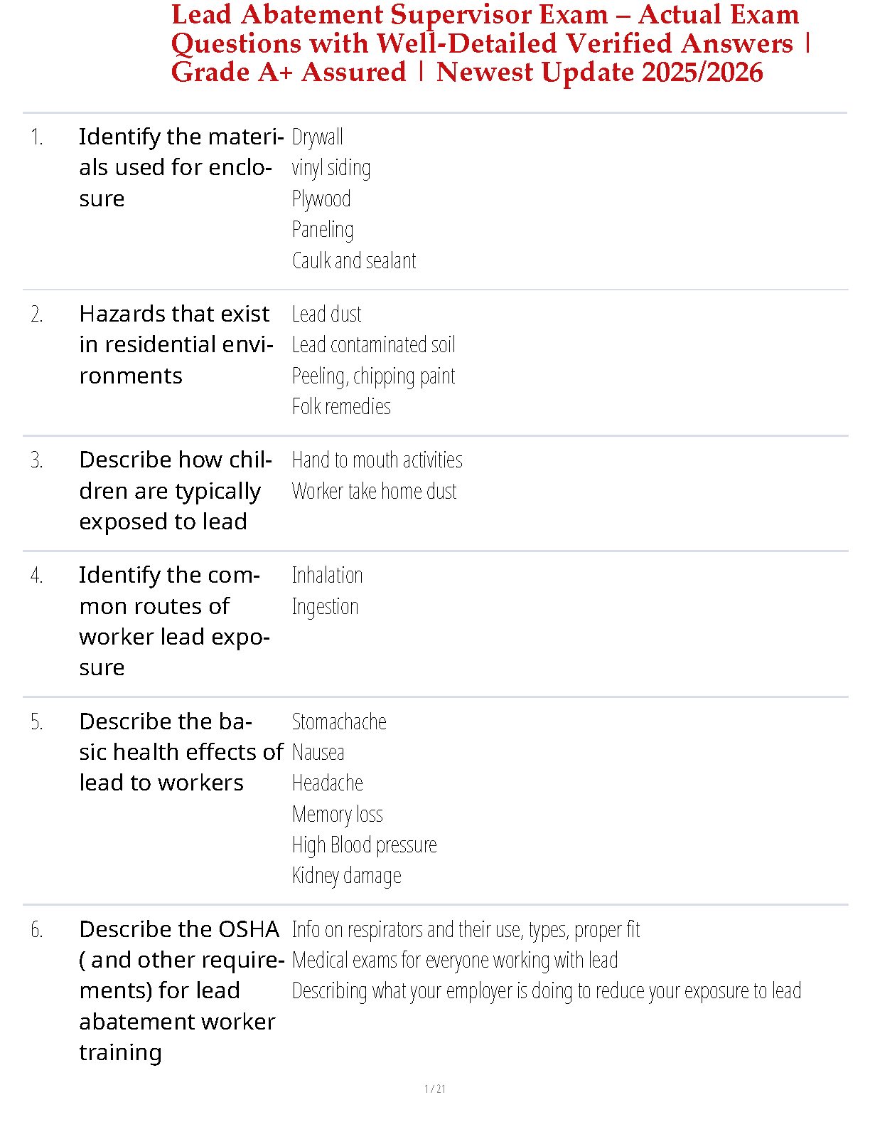 2024/2025 Lead Abatement Supervisor Exam: Actual Questions with Verified Answers