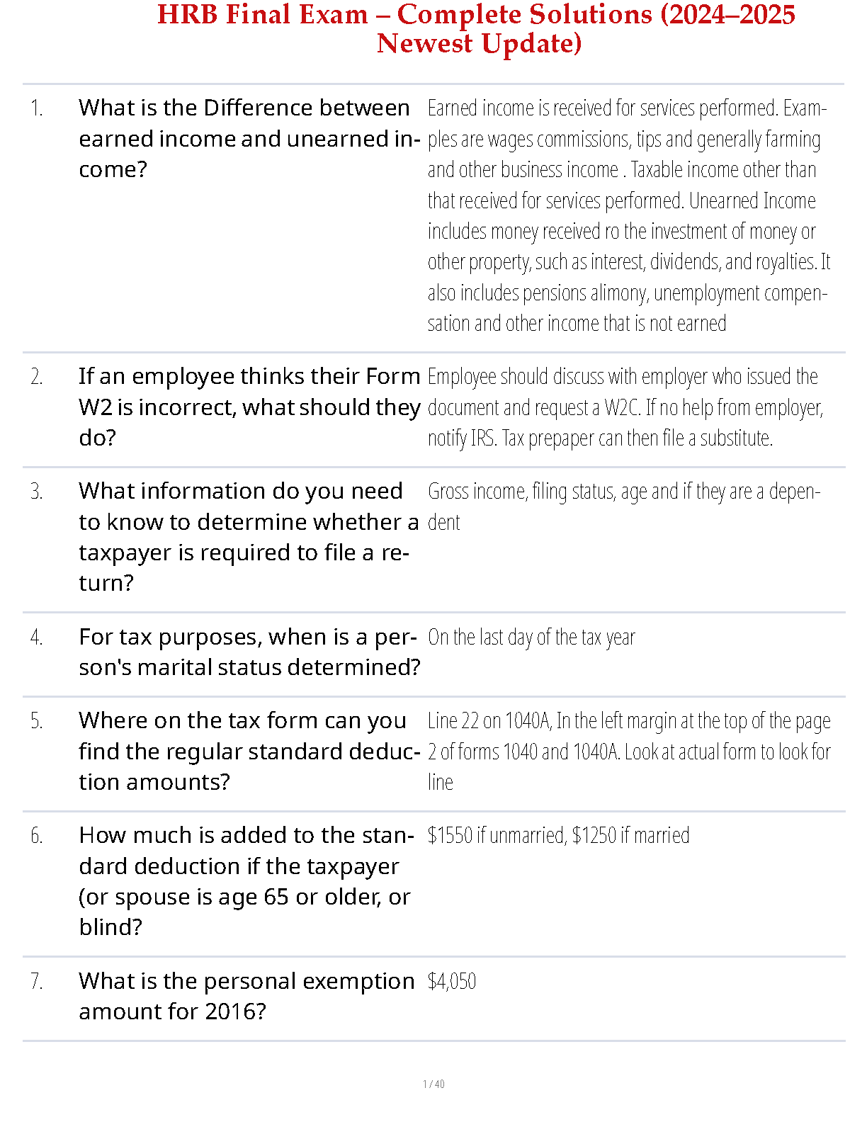 HRB Final Exam - Complete Solutions (2024-2025) - Newest Update