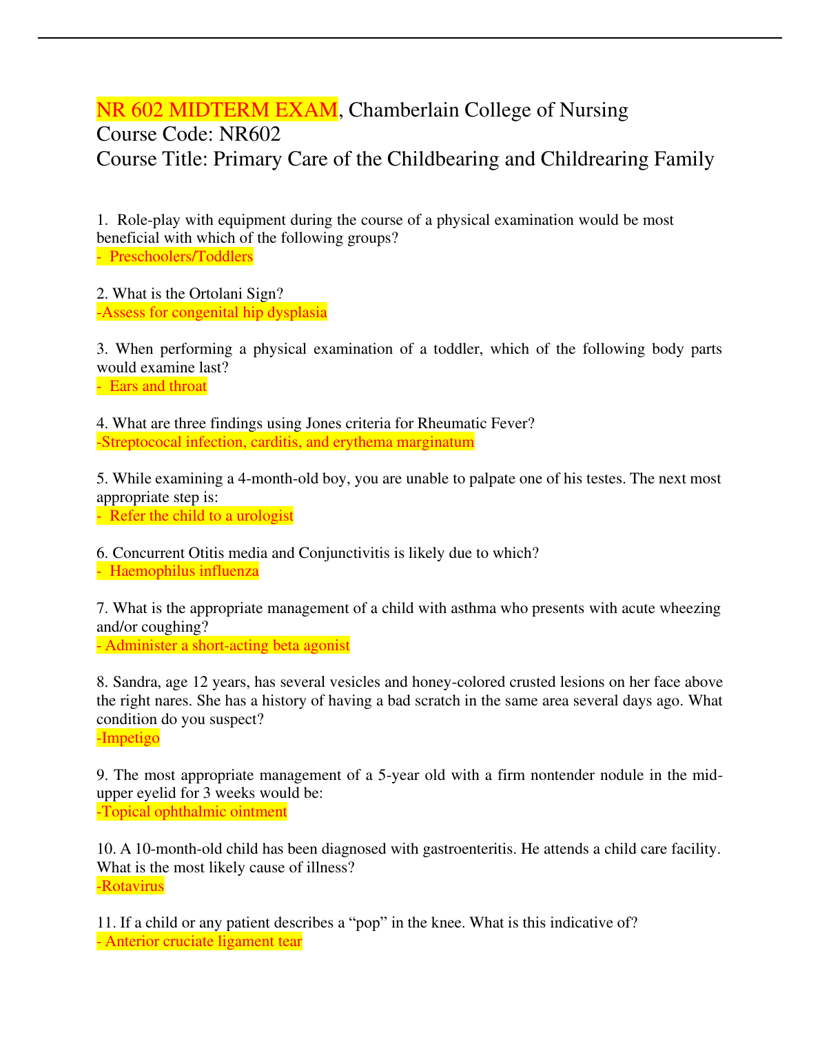 NR 602 MIDTERM EXAM, Chamberlain College of Nursing : NR602 Primary Care of the Childbearing and Childrearing Family. DOWNLOAD on www.hackedexams.com INSTANTLY.
