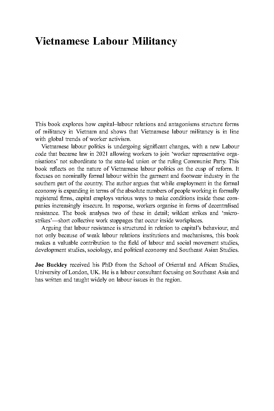 Explore the complexities of Vietnamese labor militancy through this insightful book. Understand the capital-labor antagonisms and self-organized struggles shaping Vietnam's economic landscape. Perfect for students and researchers of economics, political science, and sociology.
