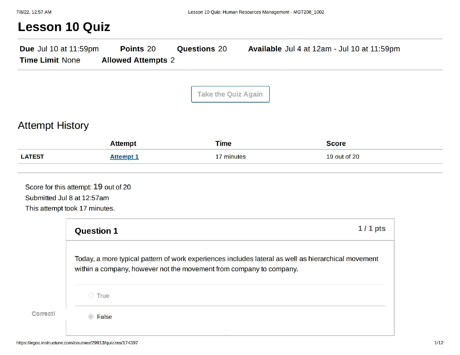 Ace Your Human Resource Management Exams: MGT208_1002 Lesson 10 Quiz Prep for 2024/2025