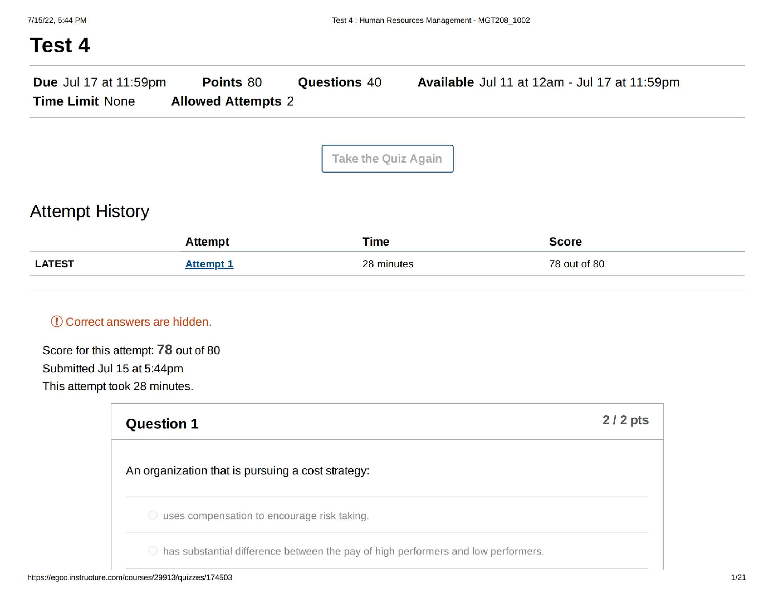 Human Resource Management MGT208 Quiz 2024/2025: Ace Your Exams with This Practice Test
