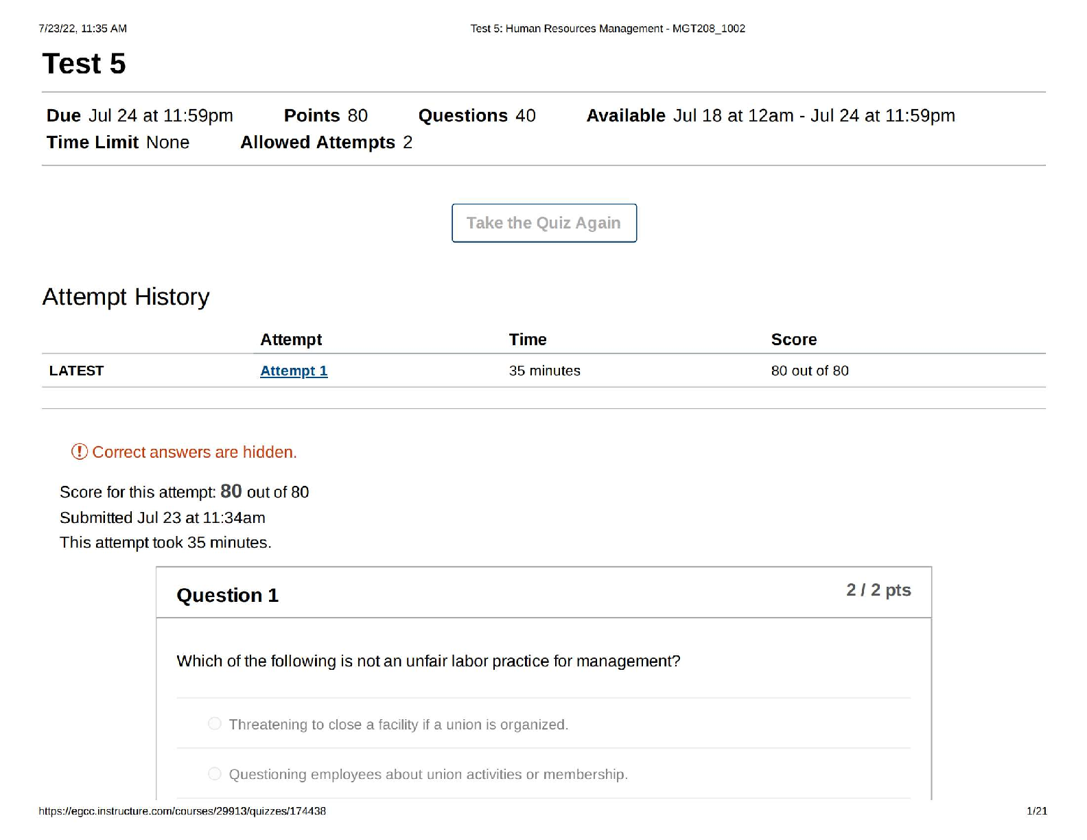 Prepare for your Human Resources Management exam with confidence using this comprehensive test bank designed to help students pass on their first attempt. This resource covers key concepts and practice questions based on the MGT208 curriculum, ensuring you're well-prepared for exam day.