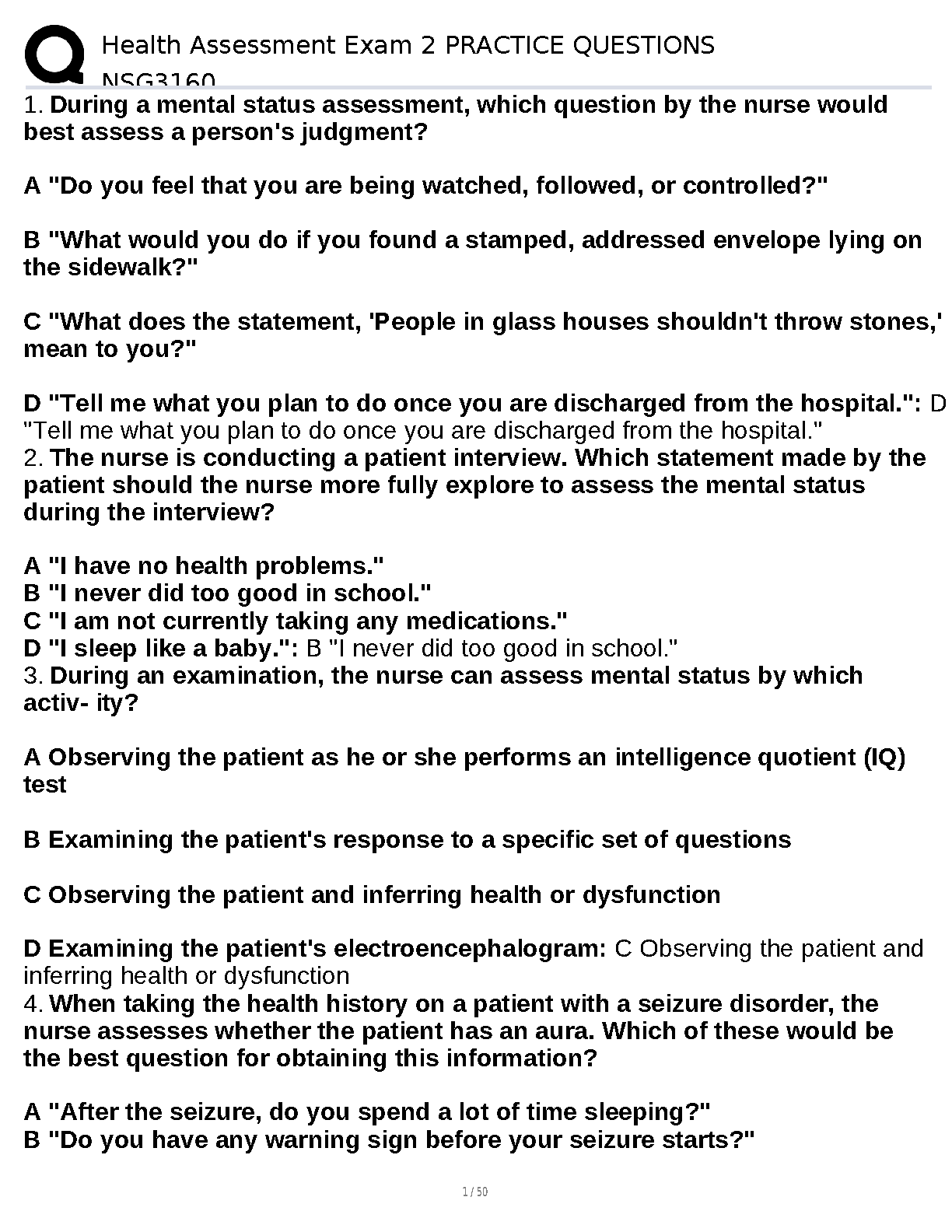 Ace your health assessment exams on the first try with this comprehensive set of practice questions, designed to help nursing students master key concepts and avoid resits. These questions cover a range of topics essential for success in your health assessment course.