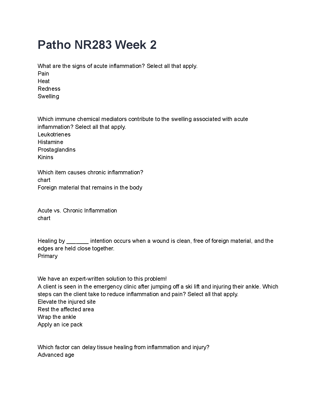 Conquer your NR283 Pathophysiology exam with this comprehensive study guide, designed to help you pass on the first try. Master acute and chronic inflammation, immune chemical mediators, and tissue healing. Avoid resits and achieve exam success!