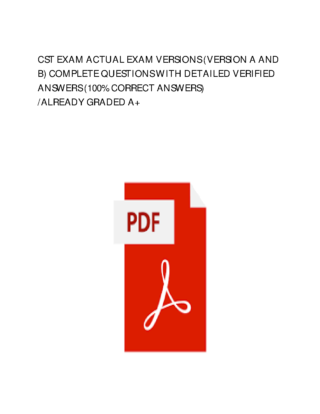 CST Exam Actual Exam Versions (Version A and B) by [Author Names] - Complete Questions with Detailed Verified Answers