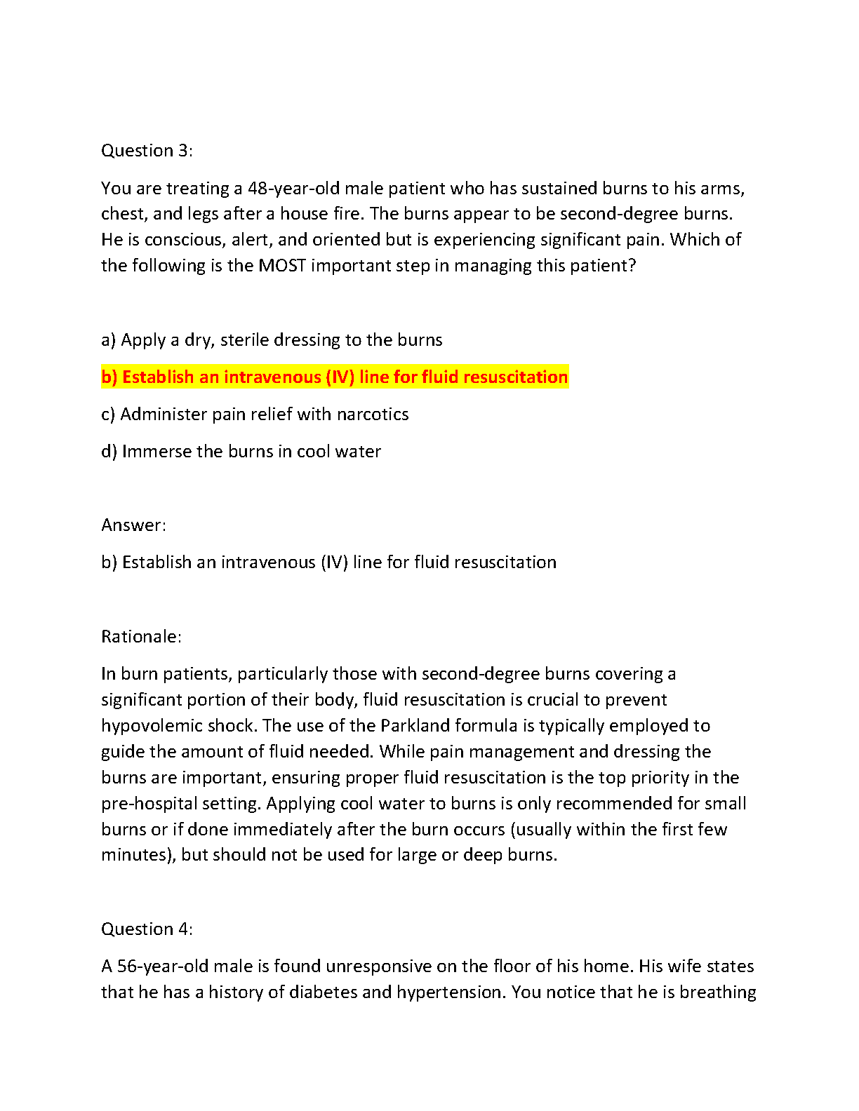 EMT Test Actual Exam Real Questions and Answers with Rationales: Chapters 18-28