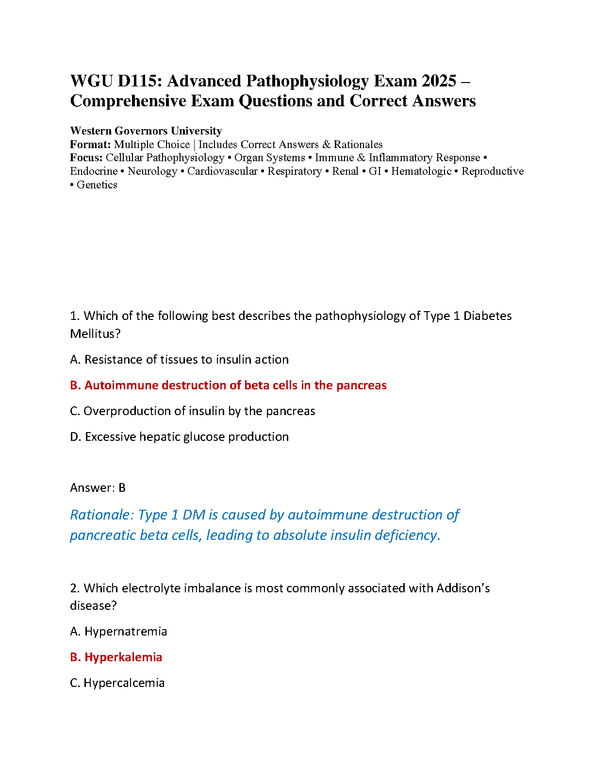 WGU D115 Advanced Pathophysiology Exam 2025: Comprehensive Questions & Answers