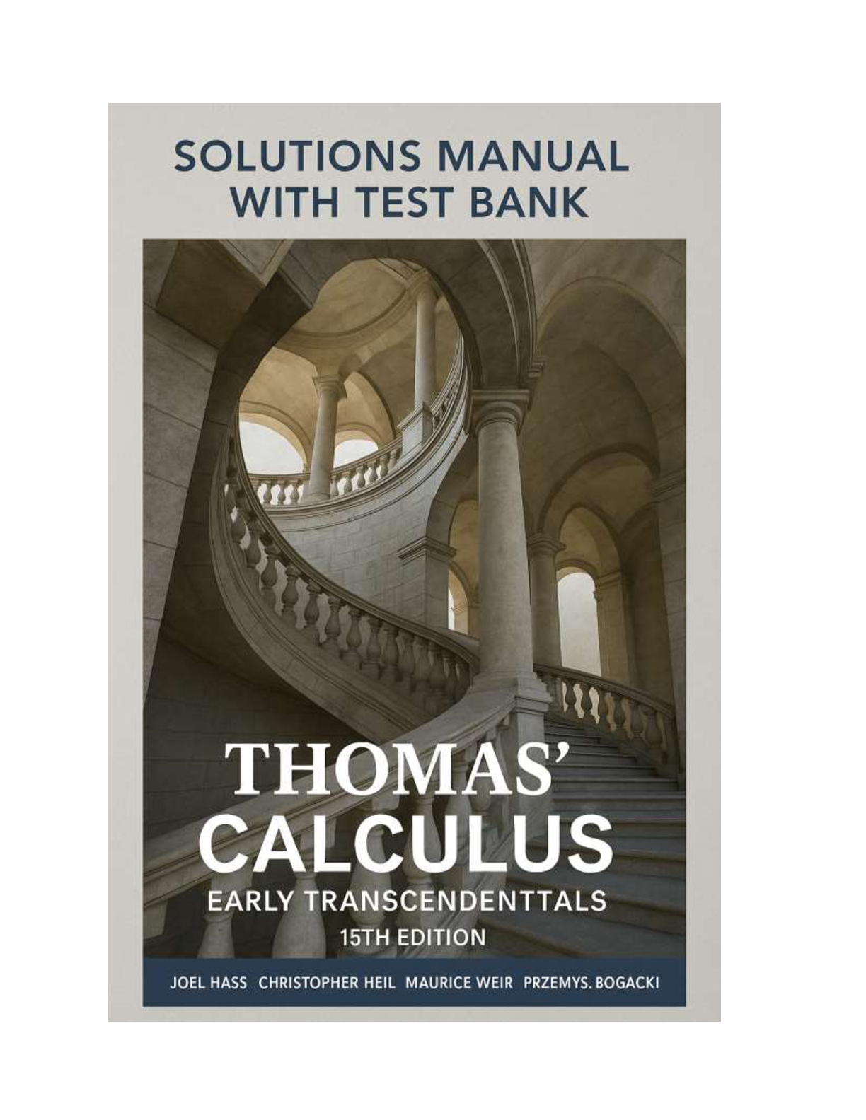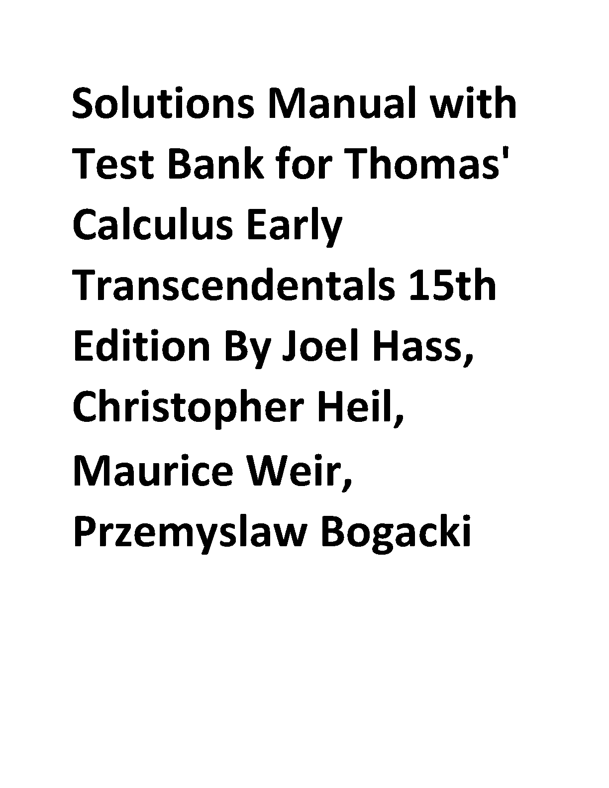 Solutions Manual & Test Bank for Thomas' Calculus Early Transcendentals 15th Edition by Joel Hass, Christopher Heil, Maurice Weir, Przemyslaw Bogacki